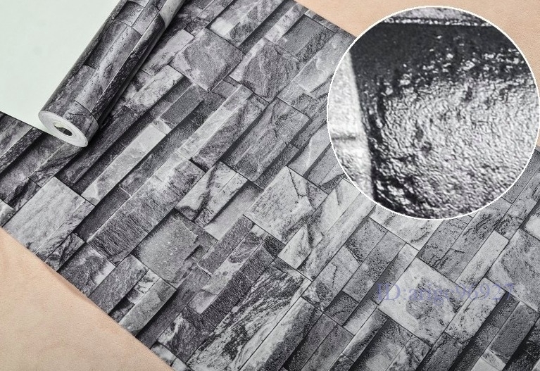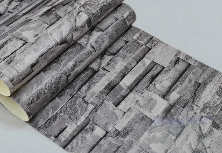 3D壁紙 10m×53cm 立体石レンガデザイン 灰色 グレー DIY 部屋 模様替 店舗 レストラン ヴィンテージモダン