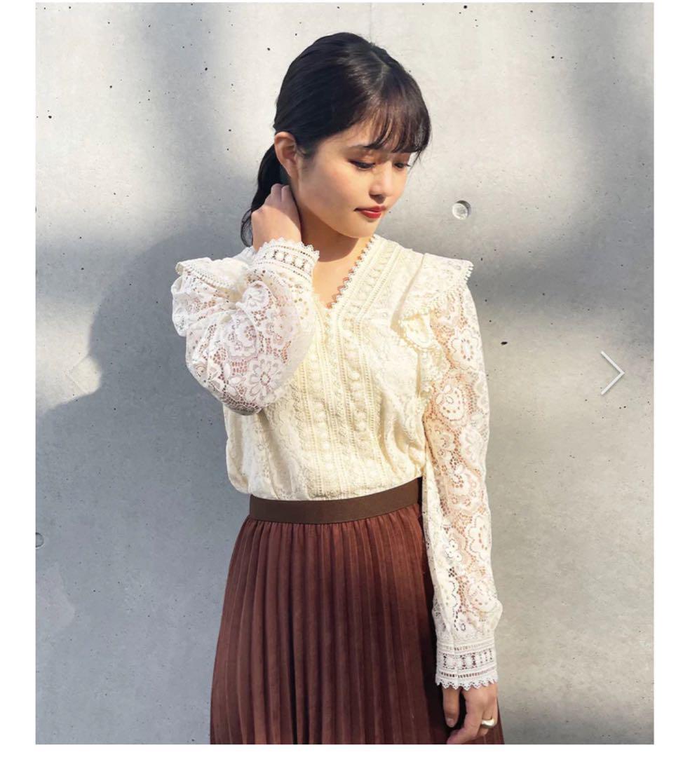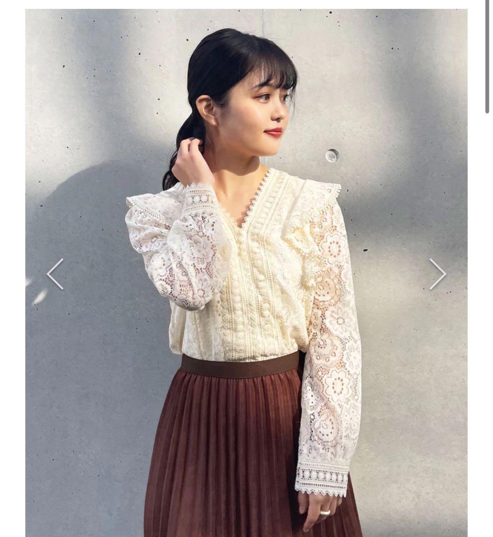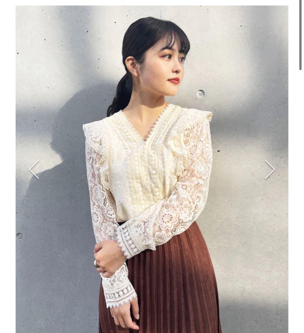 立体感のあるレースがエレガントな雰囲気のブラウスです。