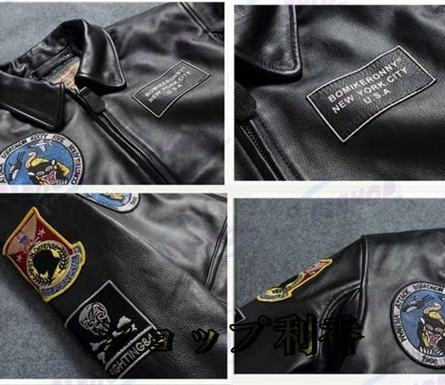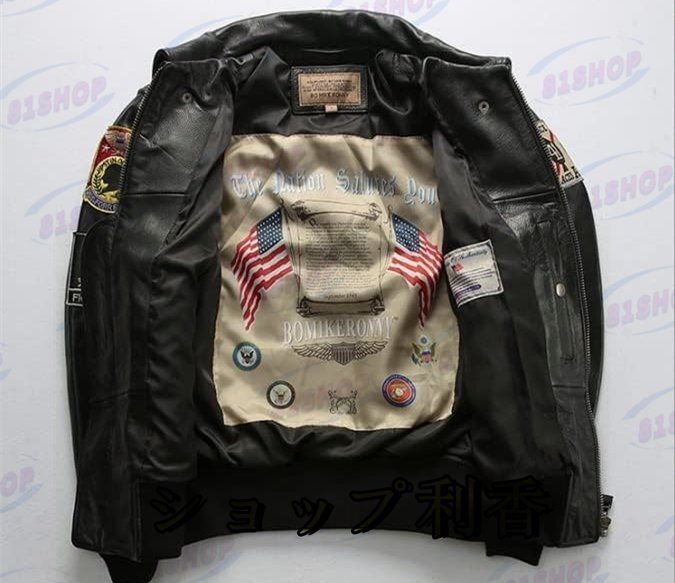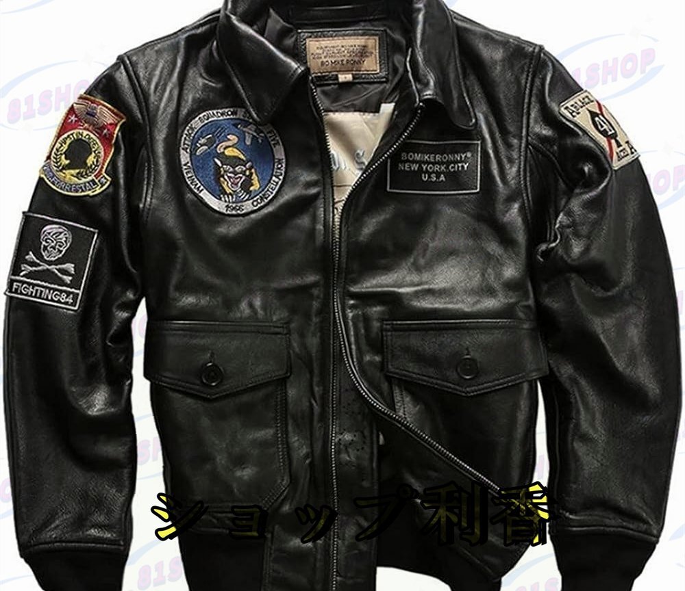 大特売! フライトジャケット 本革ジャケット ワッペン付き 空軍服 ライダースジャケット 牛革 折り襟 レザージャケット 革ジャン