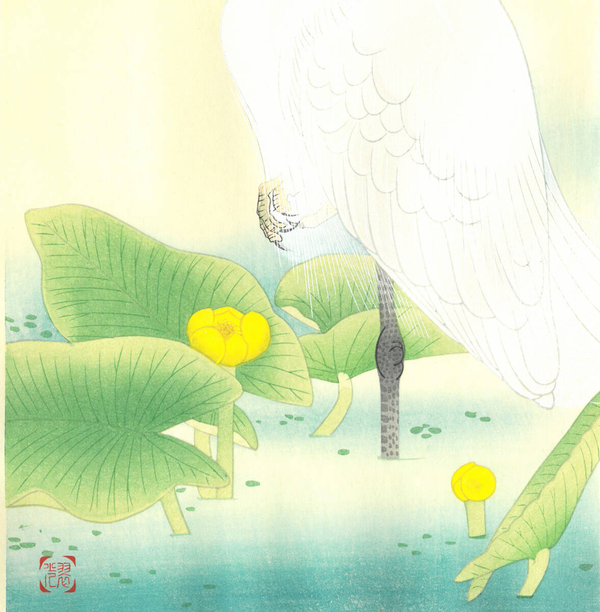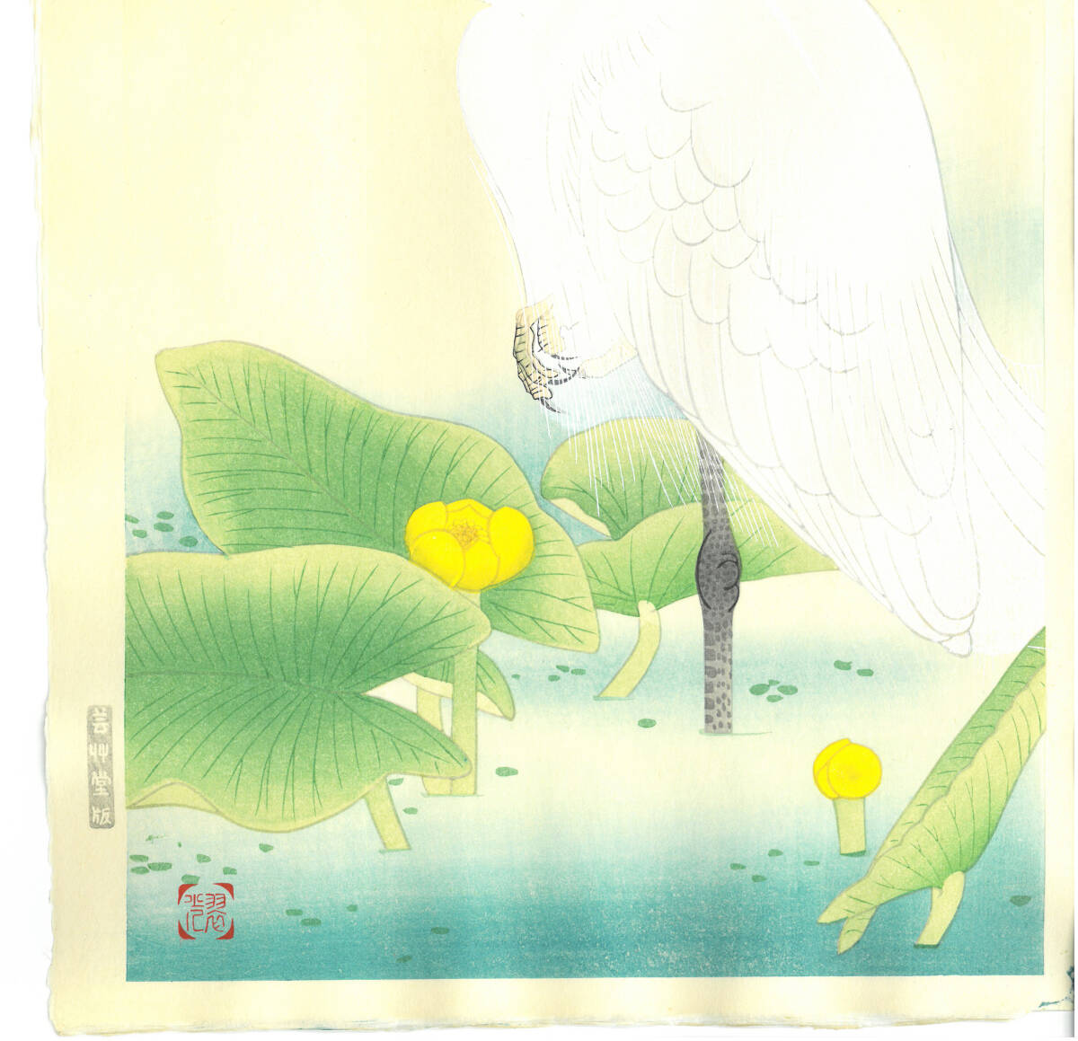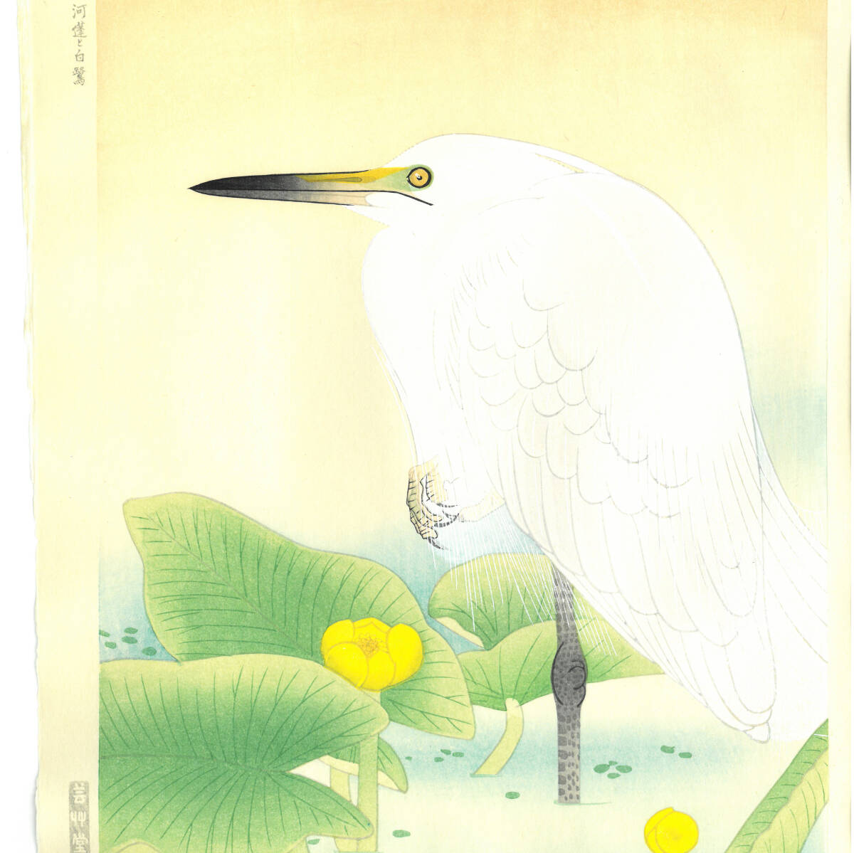 真作保証 福田翠光 木版画     河蓬と白鷺   初版 大正~      京都の一流の摺師の技をご堪能下さい!    希少作品!
