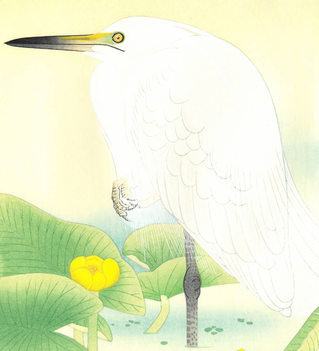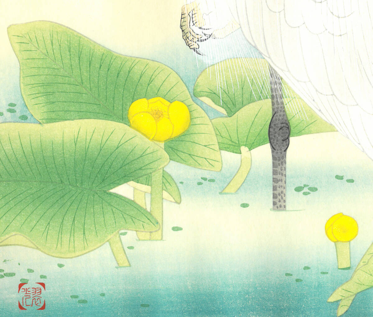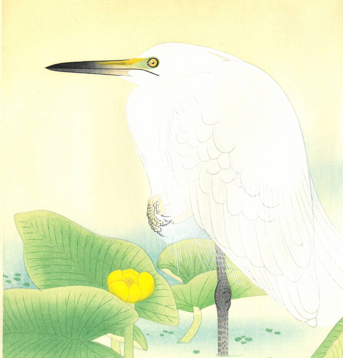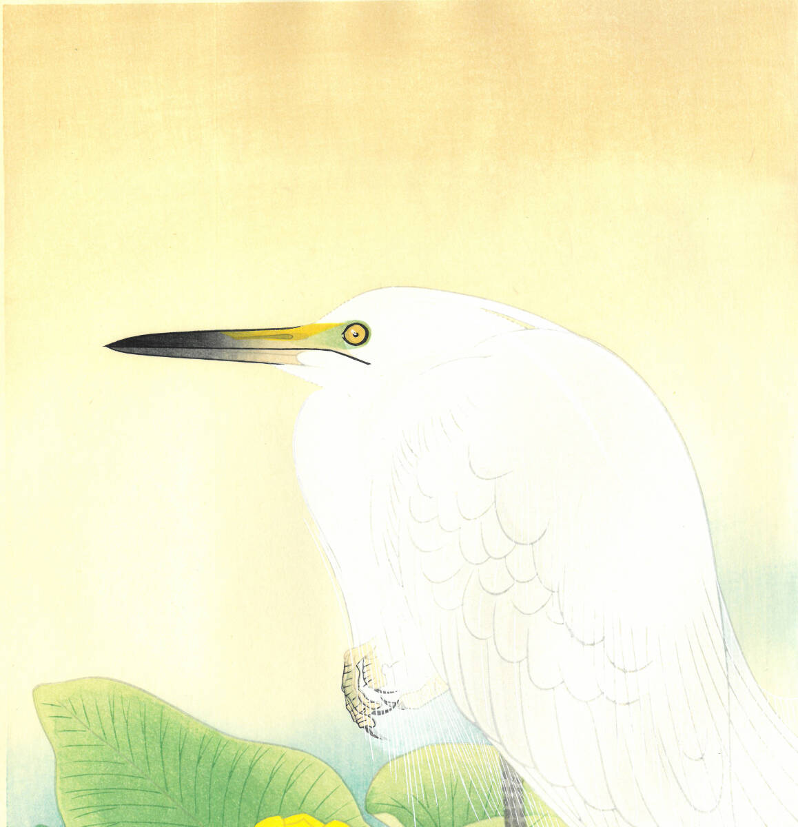真作保証 福田翠光 木版画     河蓬と白鷺   初版 大正~      京都の一流の摺師の技をご堪能下さい!    希少作品!