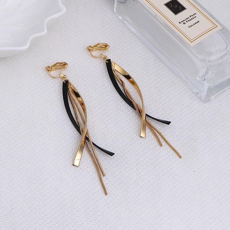 クリップ式のイヤリングになります♪ピアスの穴が開いてない方でも装着可能となっております^ ^