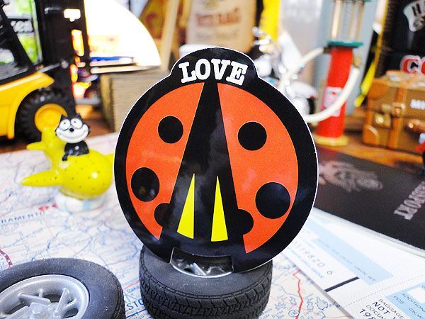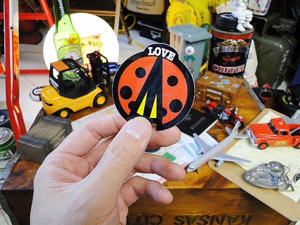 アメリカ好きならもはや説明不要のあのロゴマーク・・・・だと思いきや、よーく読んでみたら「ラブ」ってなってるジョークなステッカーです。こういうのってワンポイントで愛用品に貼っちゃうとみーんな同じ事思ってくれちゃうから楽しいの!クスってなっちゃうシュールな笑いっていうか、そういうのが楽しいよね!小アイテムのカスタムに粋な遊び心を添えてラブ仕様にしちゃえ!(≧∀≦)/