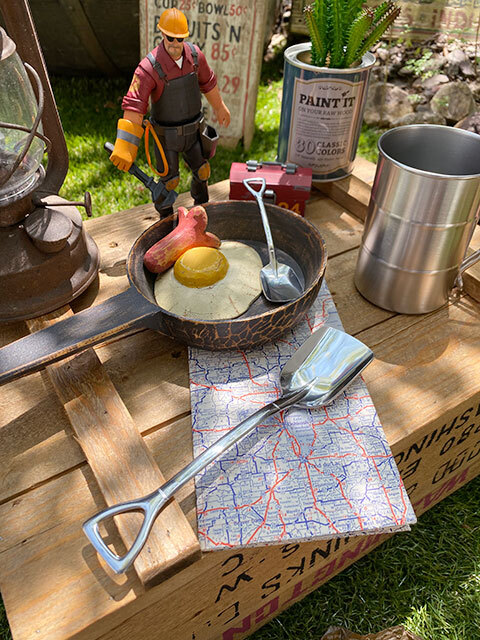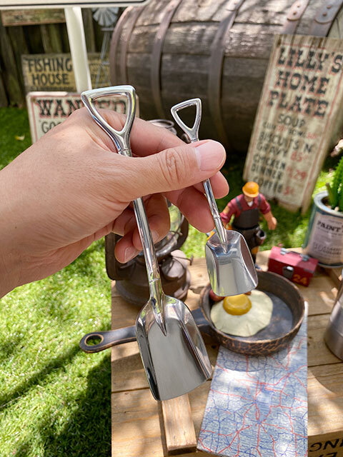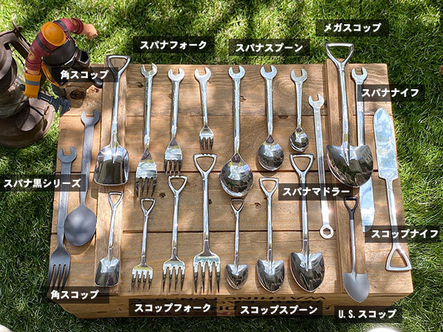 工事現場で見かけるスコップやスパナをモチーフにしたユニークなスプーンとフォークです。