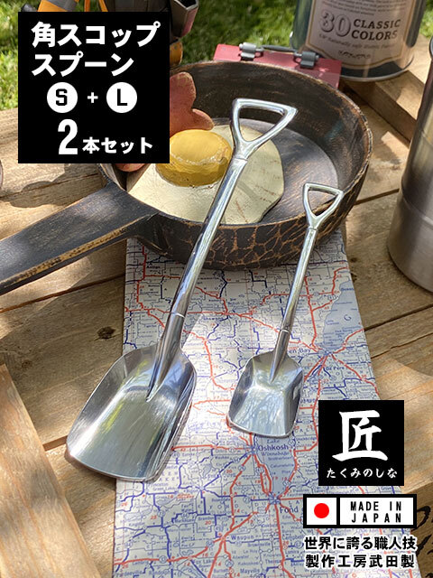 ※今ご覧頂いてるのは「角スコップスプーン SサイズとLサイズの2本セット」の販売ページです。
