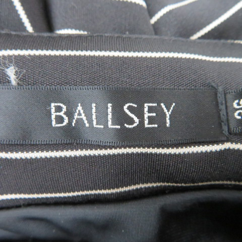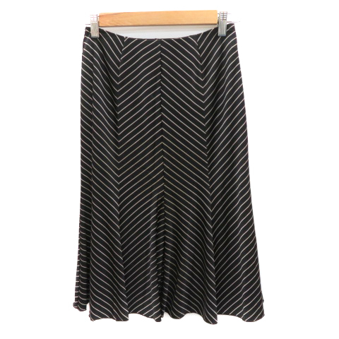 ボールジー BALLSEY トゥモローランド フレアスカート ミモレ丈 ダイアゴナルストライプ柄 36 S 黒 ブラック /YK5 レディース