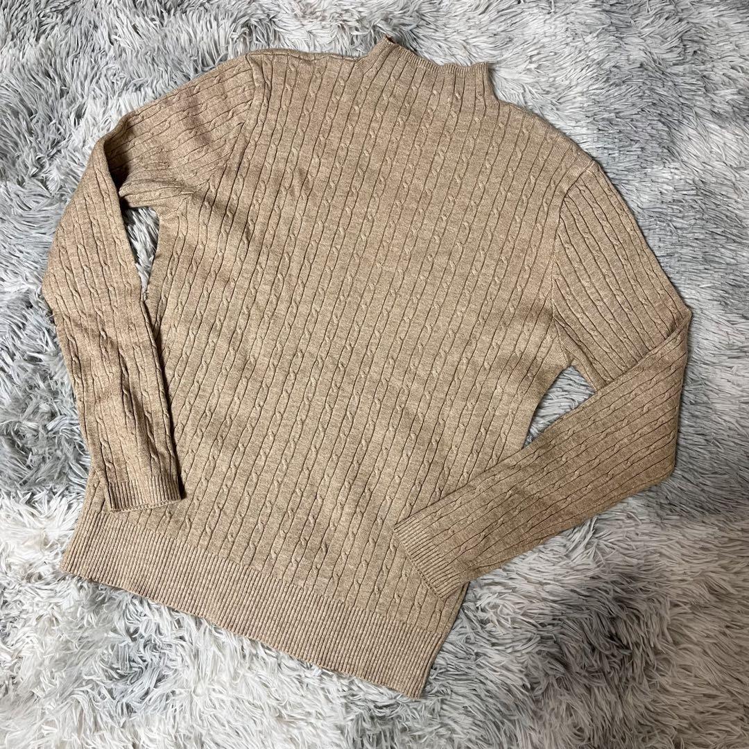 肌ざわりが良く、生地も柔らかいリブニット。ハイネックデザインでタートルネックより首がつまる感じもありません。シンプルなデザインですが形が綺麗な商品です