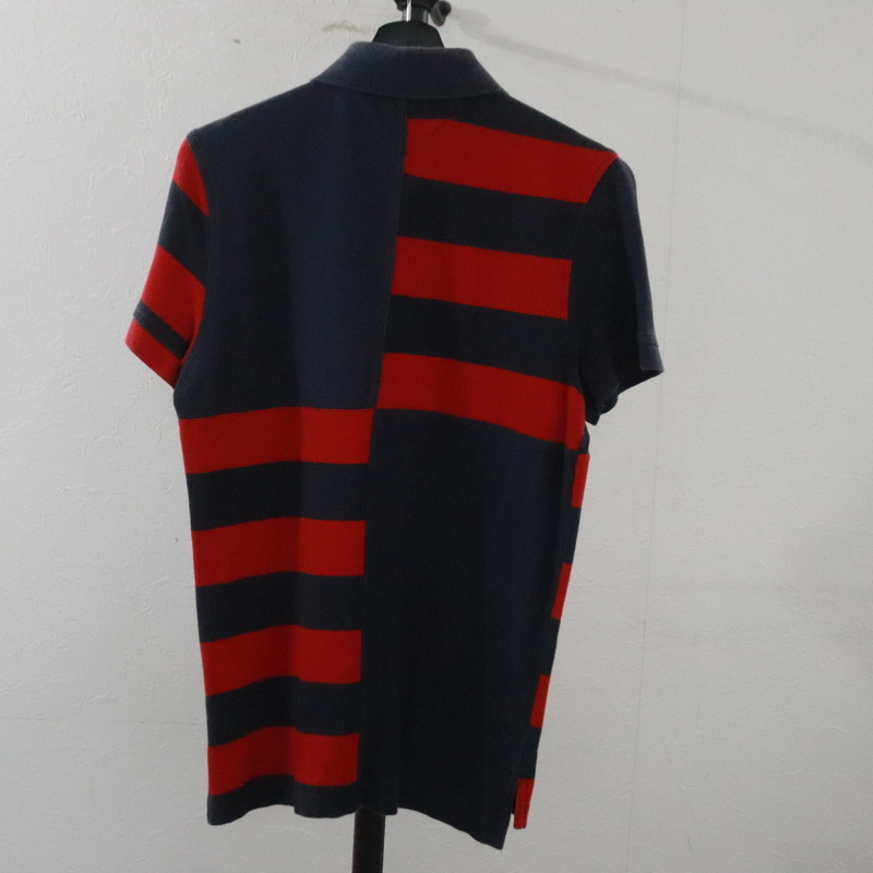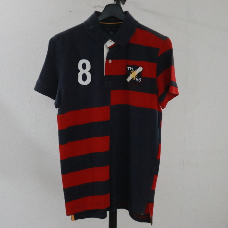 N353 2000年代製 TOMMYHILFIGER トミーヒルフィガー 半袖ポロシャツ■00s 表記Sサイズ ネイビー ボーダー カノコ アメカジ ストリート 古着