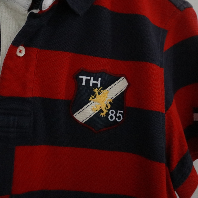 商品名 N353 2000年代製 TOMMYHILFIGER トミーヒルフィガー 半袖ポロシャツ■00s 表記Sサイズ ネイビー ボーダー カノコ アメカジ ストリート 古着