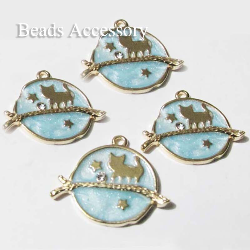BA-0547 金色円にネコとダイヤモンド 26×22mm 水色カラー 7個