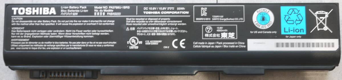 【送料185円/ジャンク】東芝ノートパソコン用バッテリー PA3788U-1BRS JAN:4546705833063