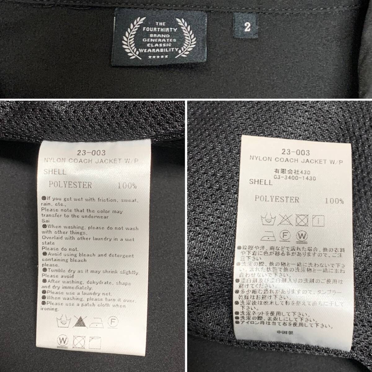 [430 FOURTHIRTY] 23SS 定価25,080 NYLON COACH JACKET W/P コーチジャケット 2 ブラック 23-003 フォーサーティ