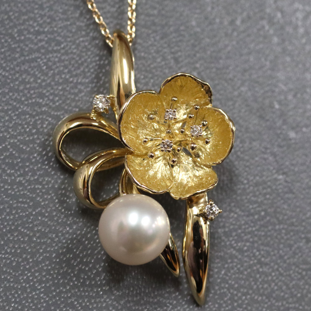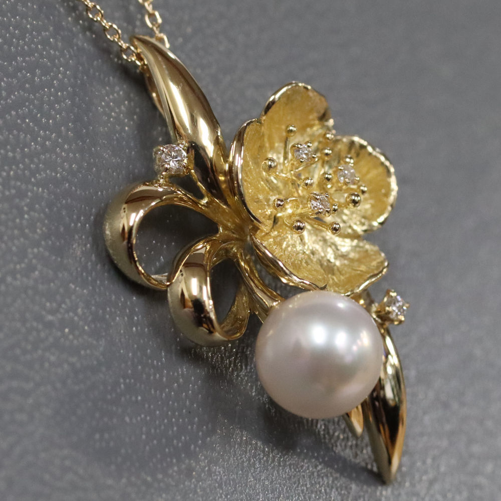 ■ K18パールダイヤモンドペンダント フラワーモチーフ D0.05 5.5g ■ | |||||||||||||||||||||||||||||||||