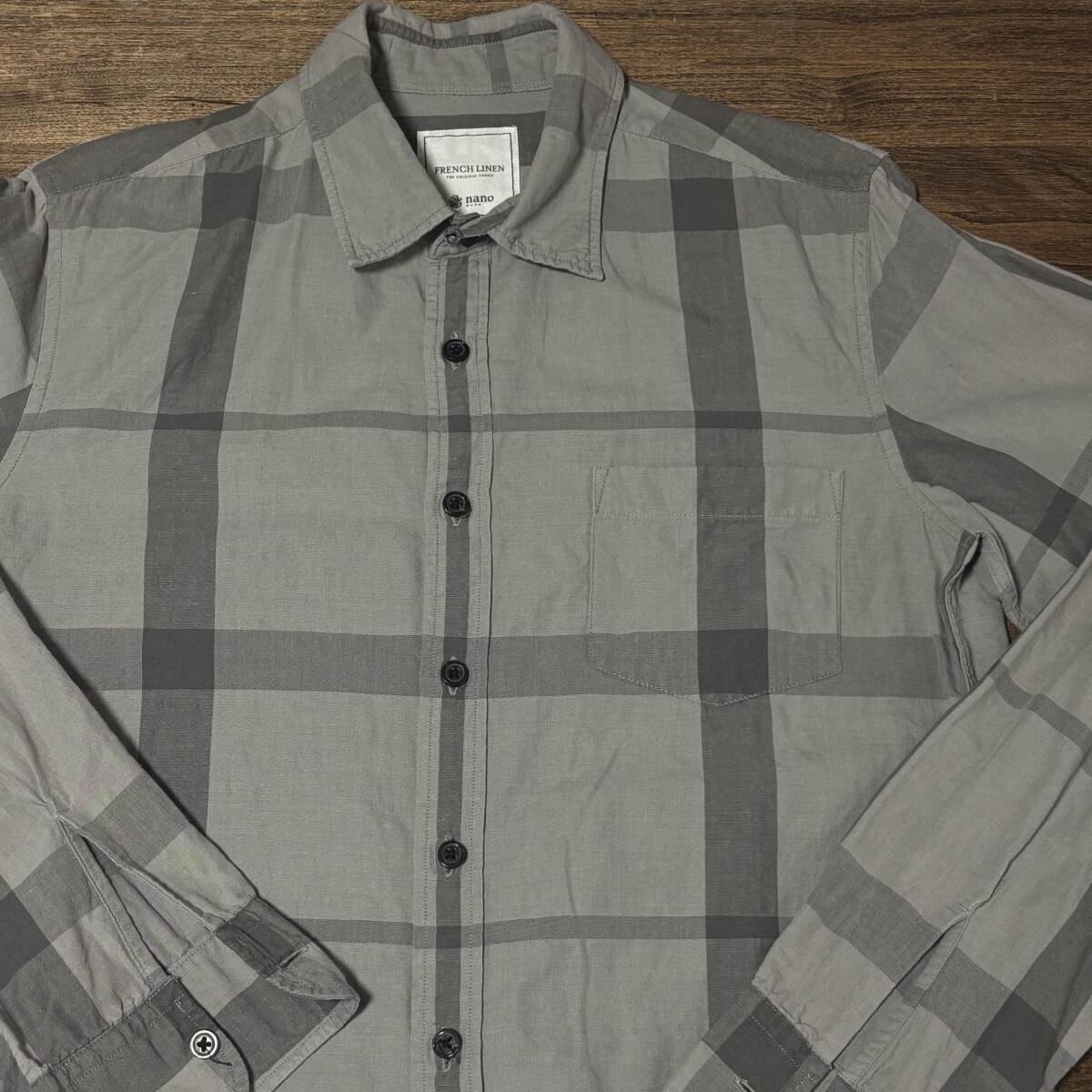 ◎ナノ・ユニバース NANO universe フレンチリネン French Linen 長袖 チェック シャツ