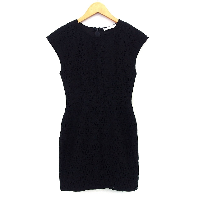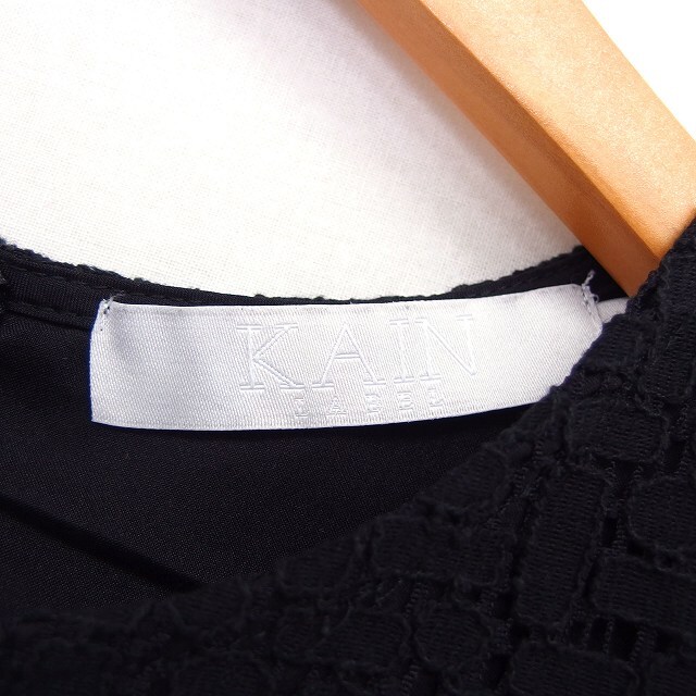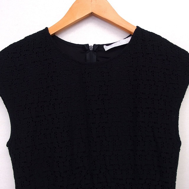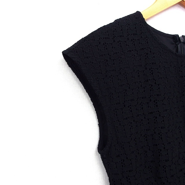 カイン KAIN ワンピース ミニ レース 総柄 ノースリーブ 丸首 綿混 P ブラック 黒 /HT11 レディース
