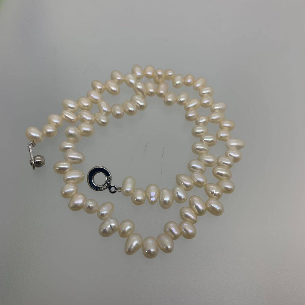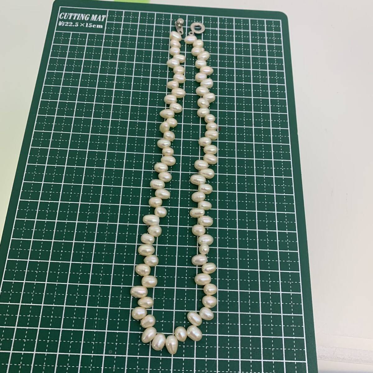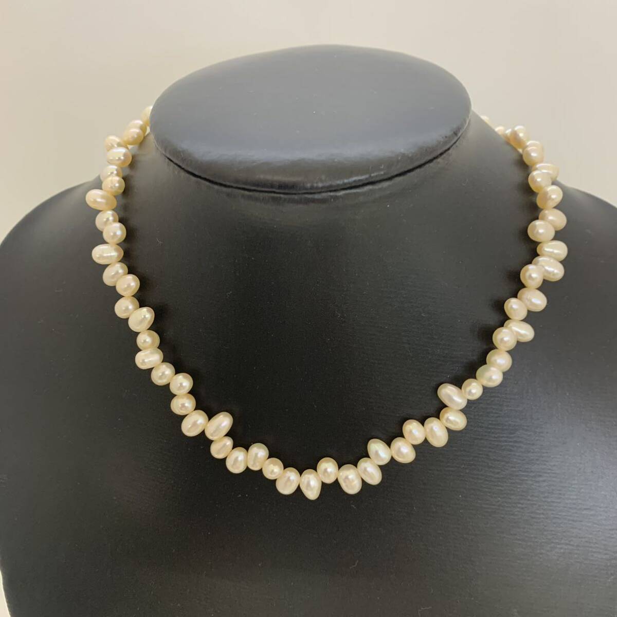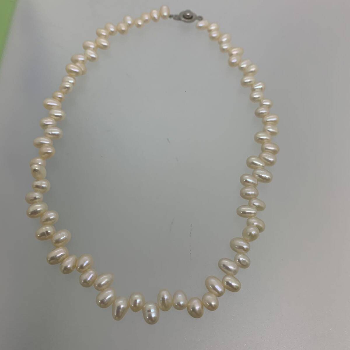 楕円淡水パールネックレス38cm/5×8mm珠/不揃いだけど味わいがあります/エレガンス/華やか