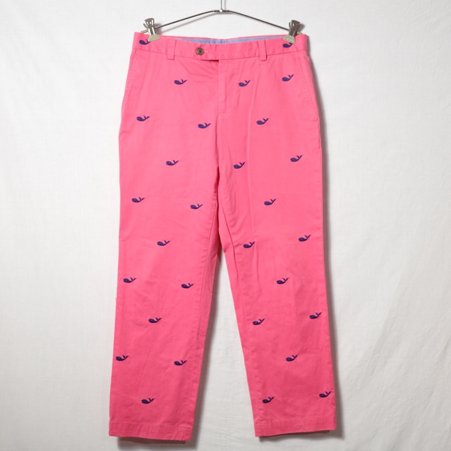 ブルックスブラザーズのスラックスになります。目をひくピンク色にクジラの刺繍が施されたお洒落な1本です。コットン100%。