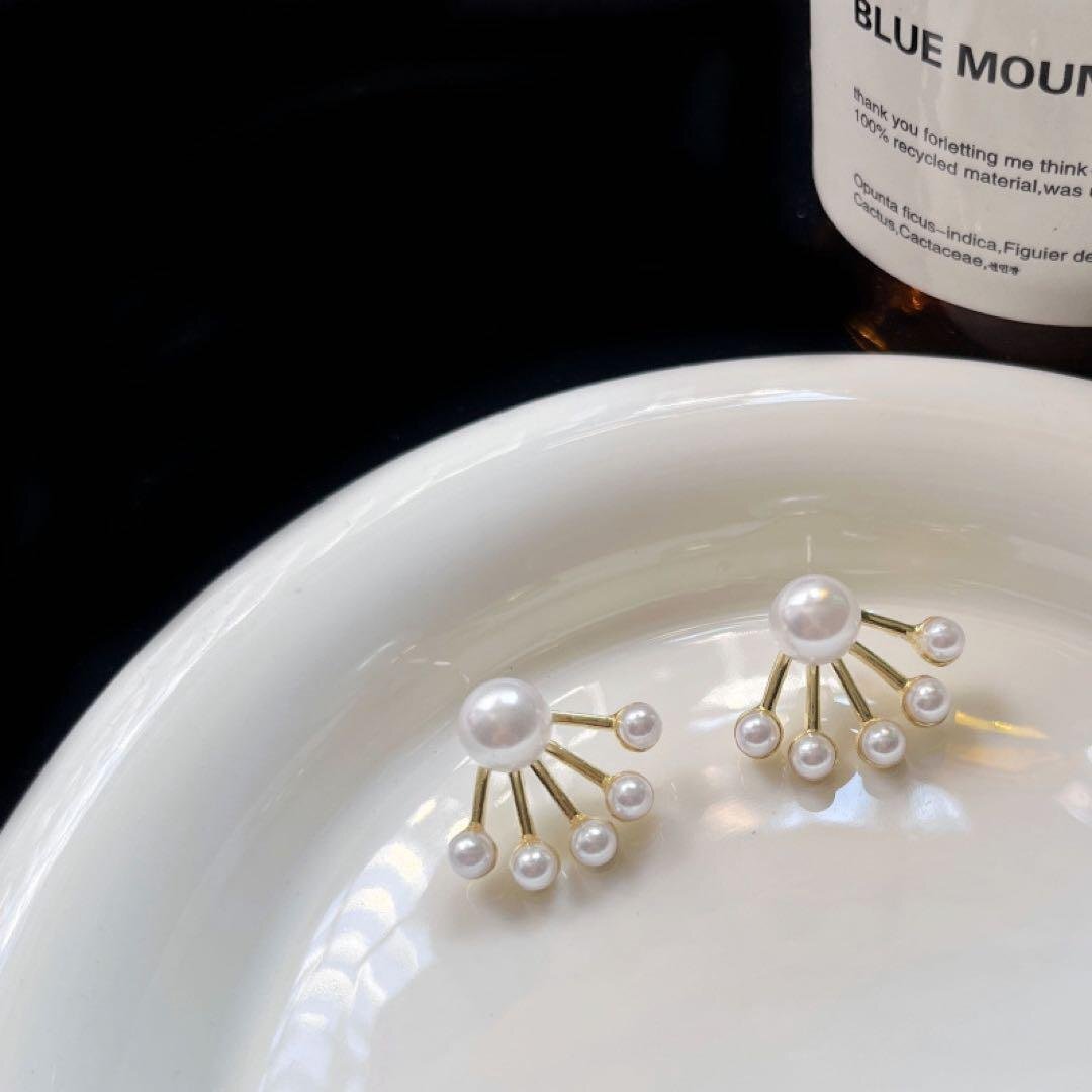 お顔周りを華やかな印象にする扇形パールピアス。派手過ぎず、控えめ過ぎない、丁度良い上品さでデイリー使いはもちろんフォーマルや入学式・卒業式などにもおすすめです。