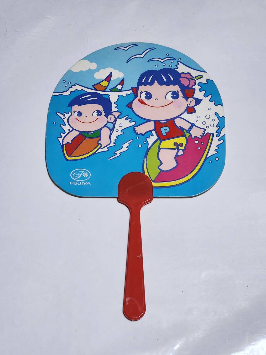 昭和レトロ 不二家 ペコちゃん&ポコちゃん うちわ です。古い物ですので少し汚れがあります。