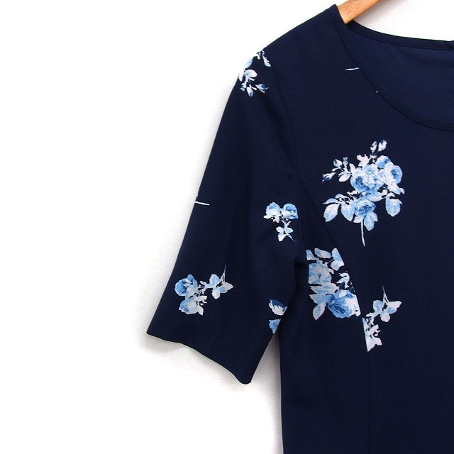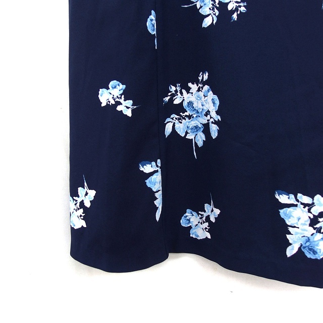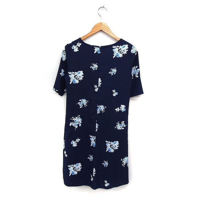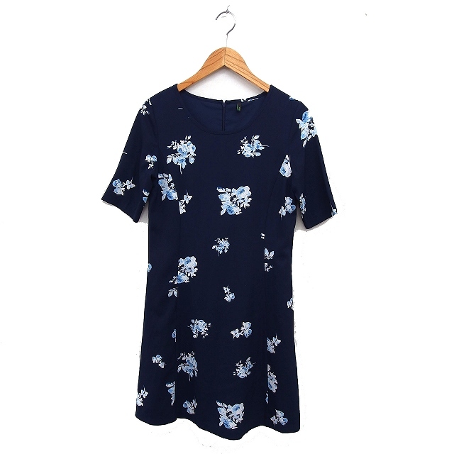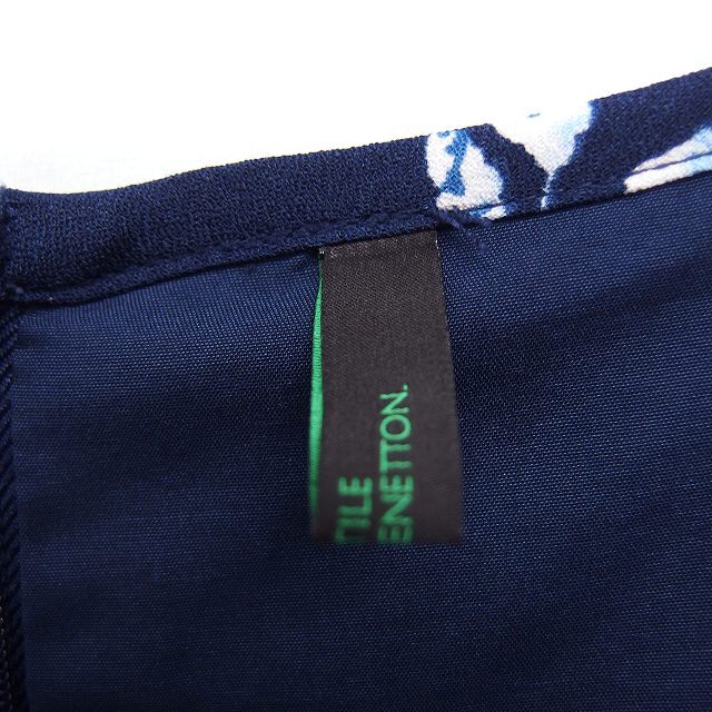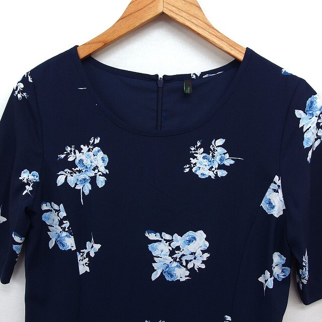 ユナイテッド・カラーズ・オブ・ベネトン UNITED COLORS OF BENETTON 花柄 ワンピース 半袖 ひざ丈 フレア XS ネイビー /FT43 レディース