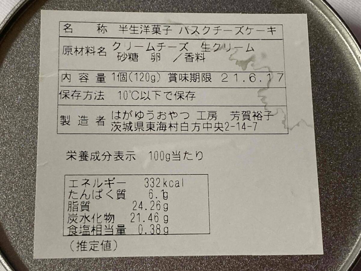 茨城県にある「はがゆう おやつ工房」のバスクチーズケーキが入っていた空き缶