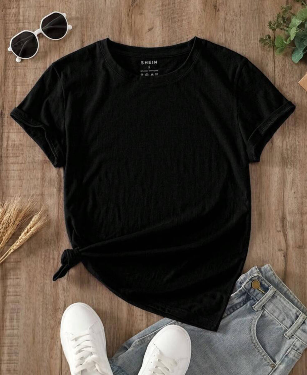 SHEIN LUNE 無地柄 ラウンドネック Tシャツ XL ブラック 未使用