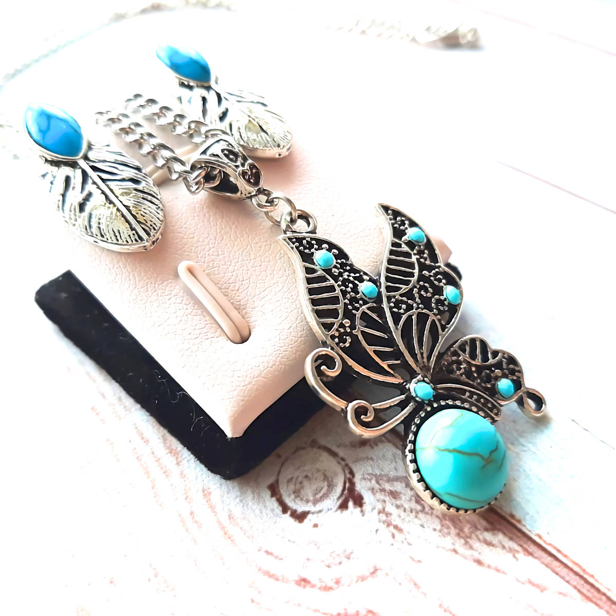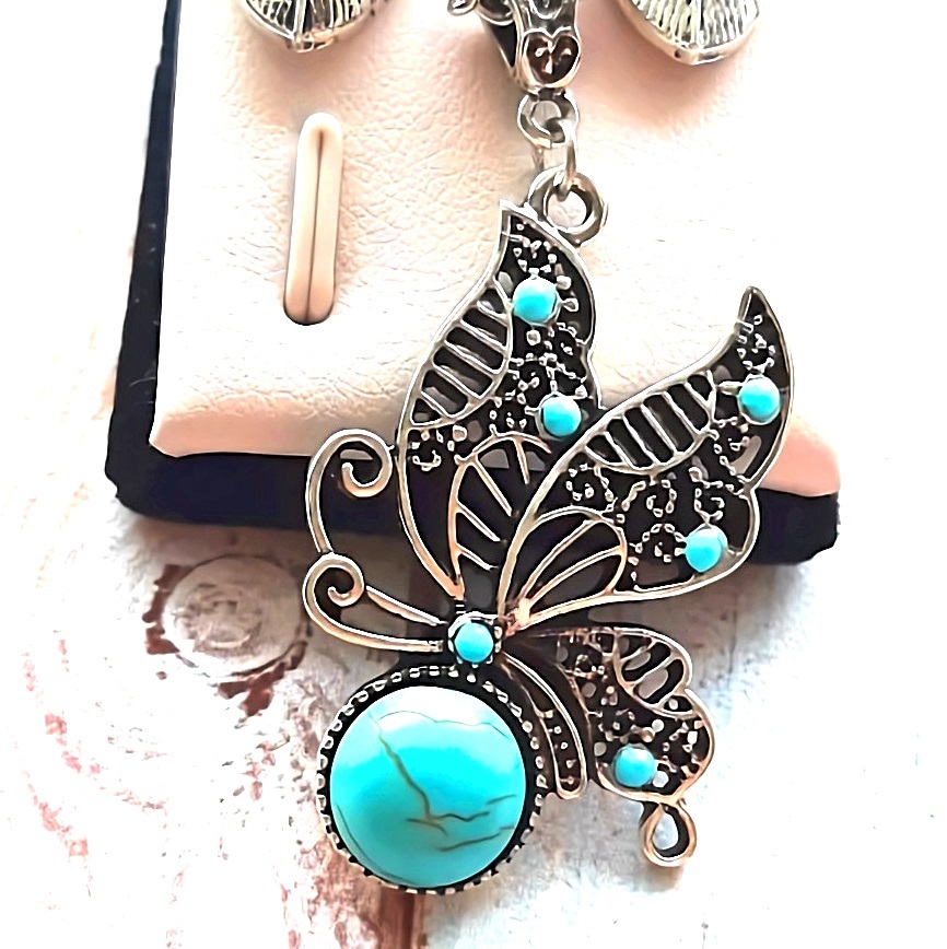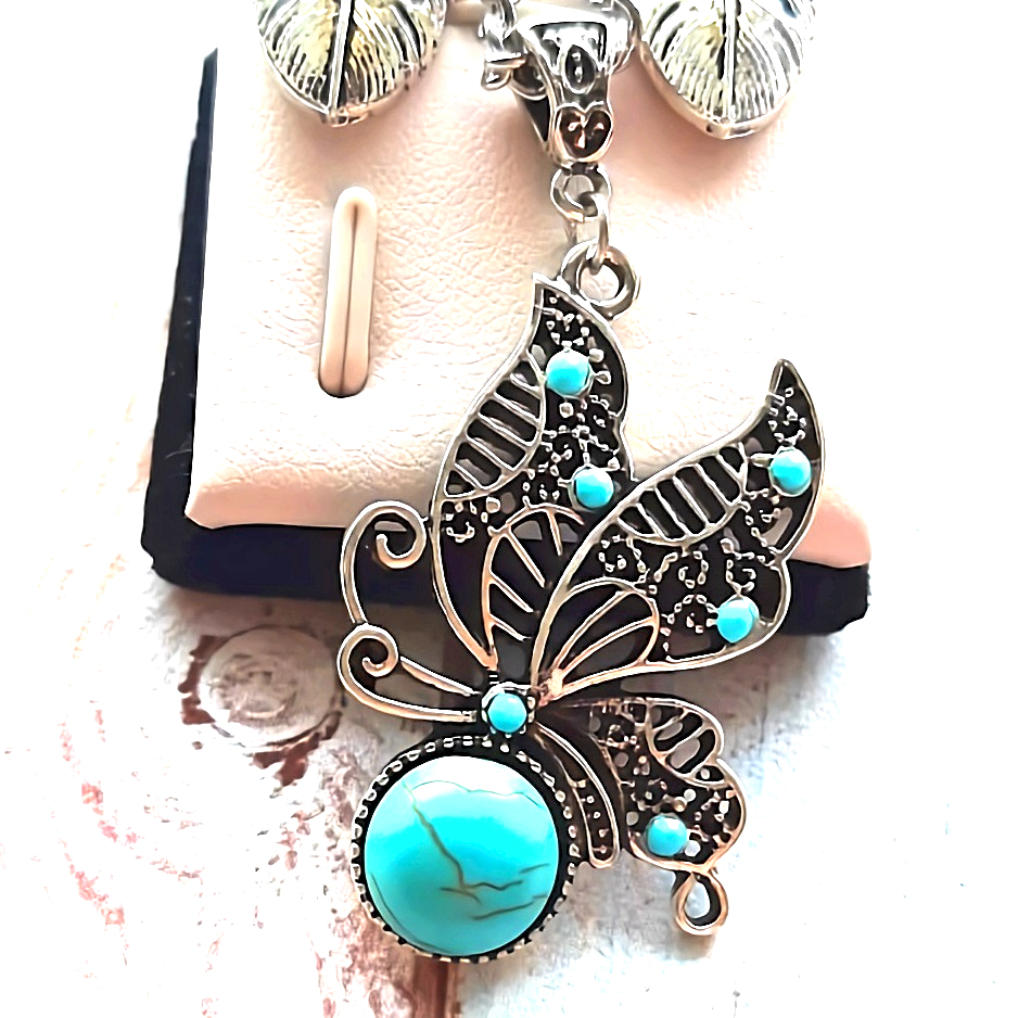 新品★送料無料★ブルーターコイズ 透かし蝶トルコ石プラチナ仕上925シルバーネックレス 誕生日プレゼント旅行初春連休ギフト国内発送
