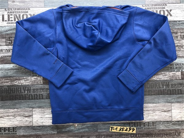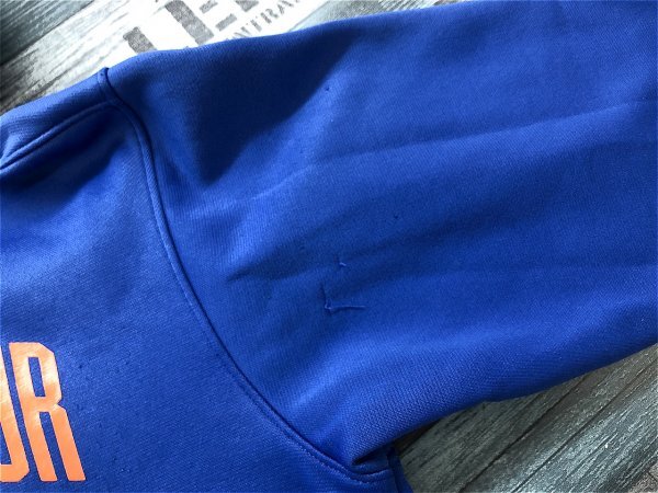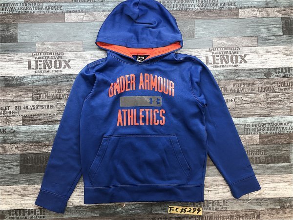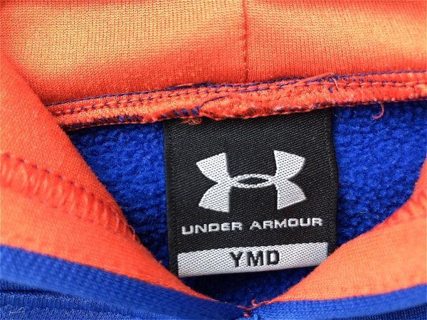 UNDER ARMOUR アンダーアーマー キッズ ビッグロゴプリント 裏起毛 前ポケット プルパーカー YMD 青オレンジ です。