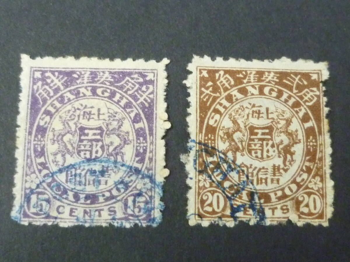 24L P №40 旧中国切手 上海書信館 1892-93年 JPS#138-39 工部双龍票 改値加蓋 計2種 使用済