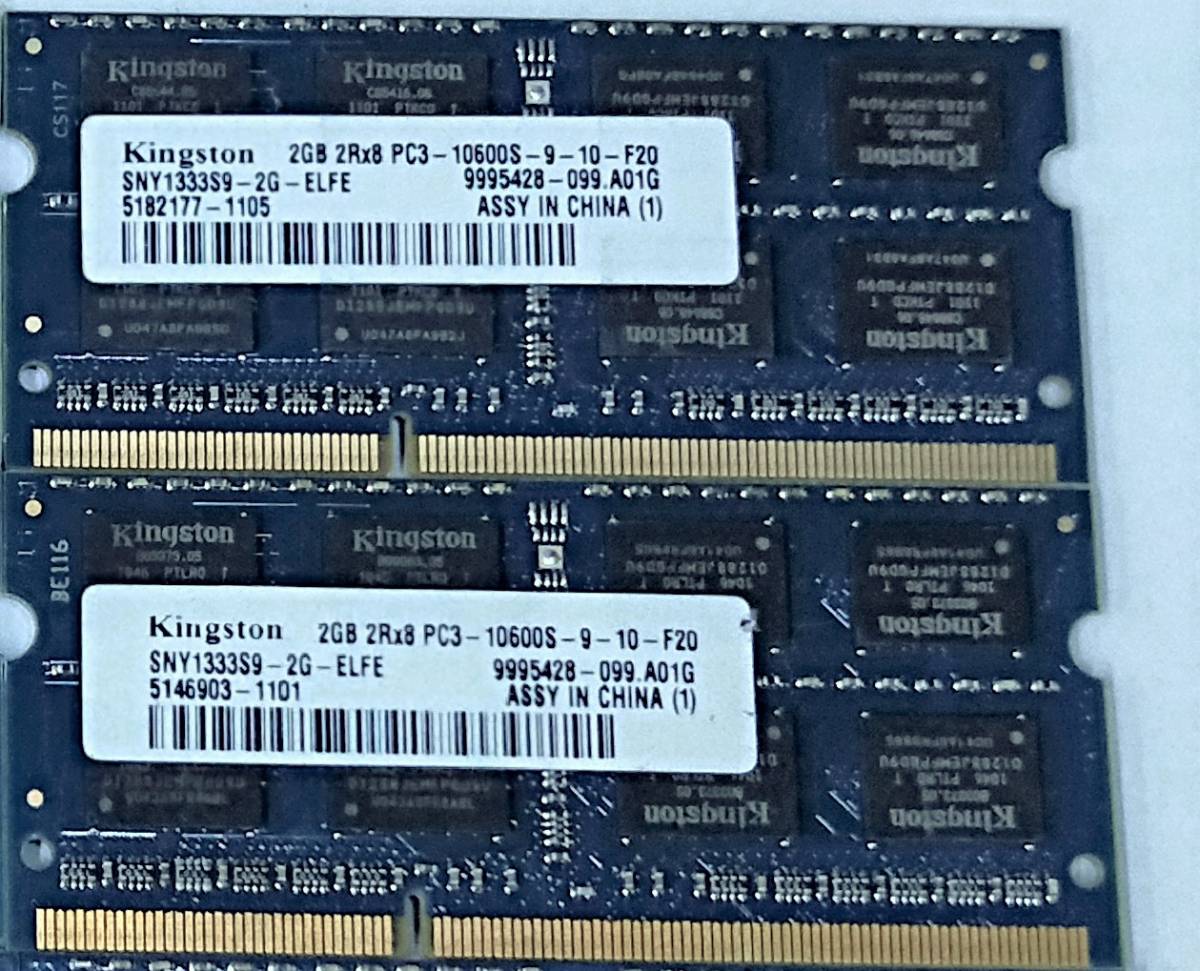 【中古パーツ】PC3 ノートパソコン用 DDR3 メモリ KINGSTON 2GB-2RX8 PC3-10600S-9-10-F20 2GBx2枚 計4GB 送料無料(在庫4枚)■N(173)