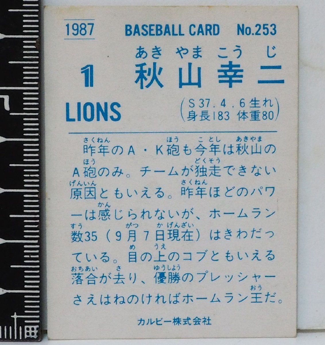 87年 カルビー プロ野球カード No.253【秋山 浩二 西武ライオンズ】昭和62年 1987年 当時物 Calbee おまけ 食玩 BASEBALL【中古】送料込