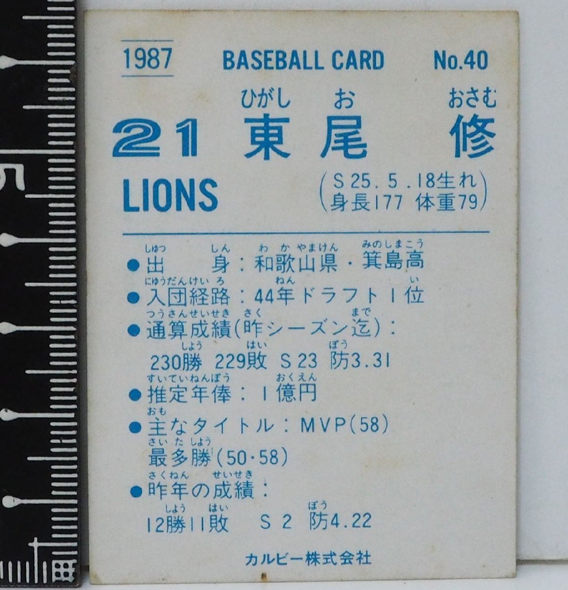 87年 カルビー プロ野球カード No.40【東尾 修 西武ライオンズ】昭和62年 1987年 当時物 Calbee おまけ 食玩 BASEBALL【中古】送料込
