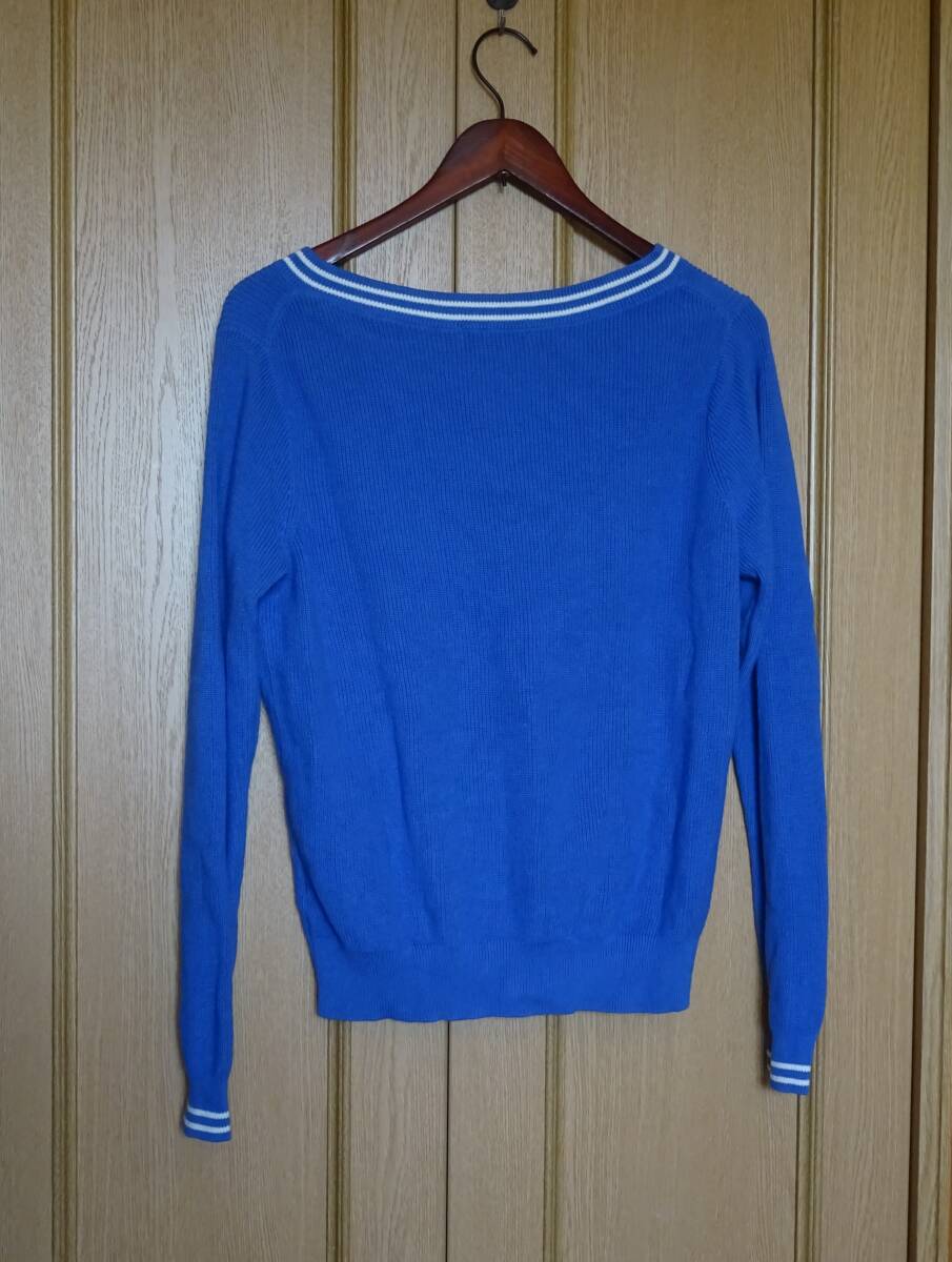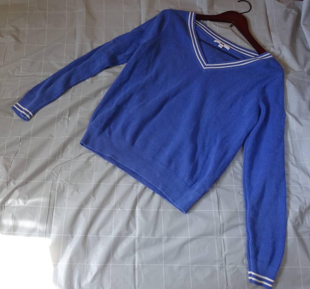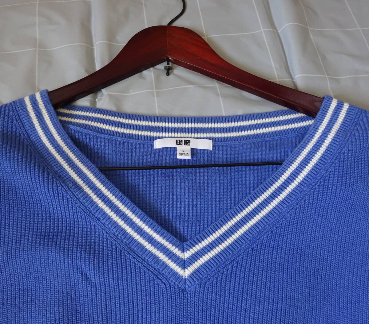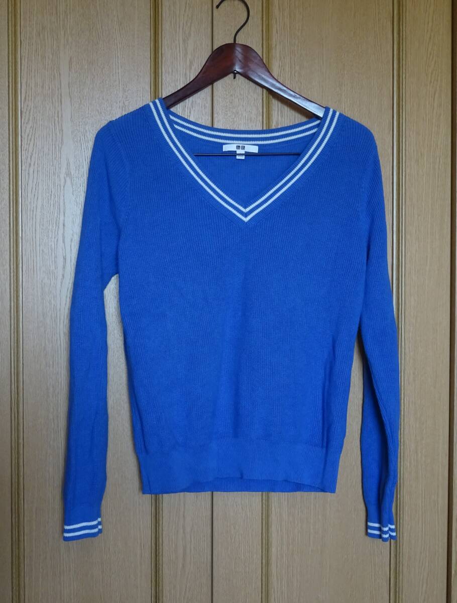 ユニクロ Vネックニット カシミヤ混 青 クリケットセーター L
