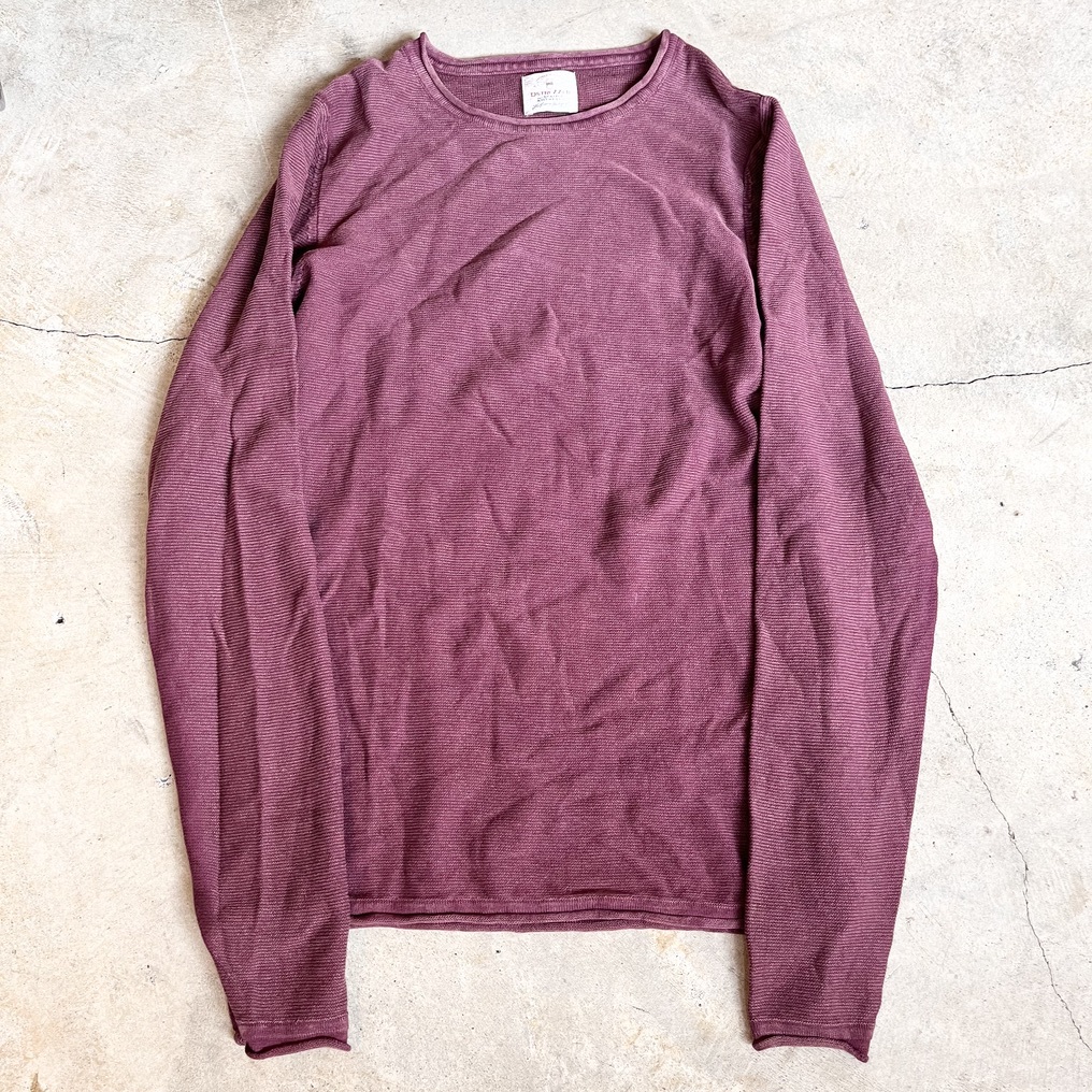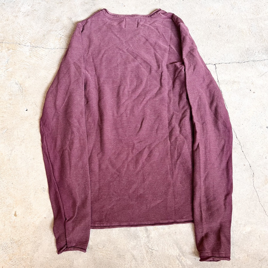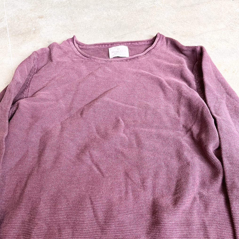 DSTREZZED ディストレス 長袖カットソー ニット セーター コットンニット 綿ニット クルーネック メンズSサイズ 木綿100% レッド えんじ色