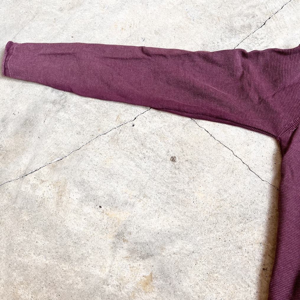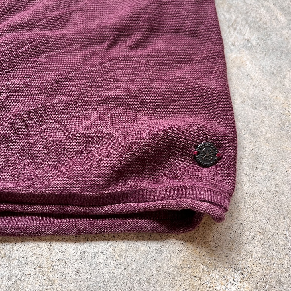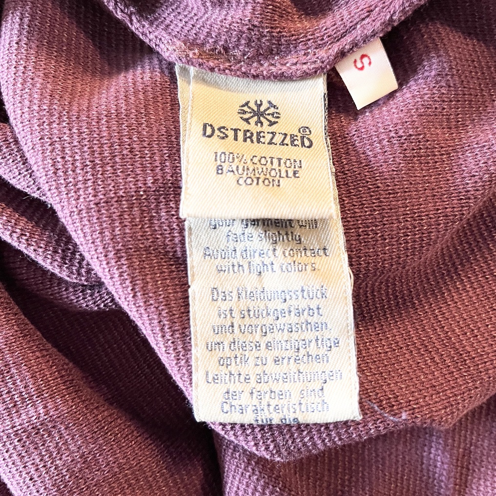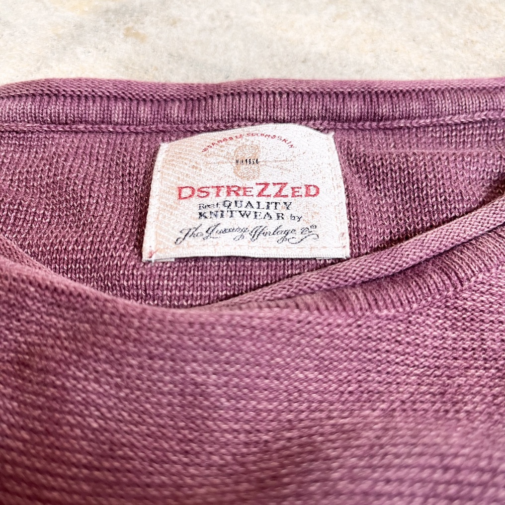 DSTREZZED ディストレス 長袖カットソー ニット セーター コットンニット 綿ニット クルーネック メンズSサイズ 木綿100% レッド えんじ色