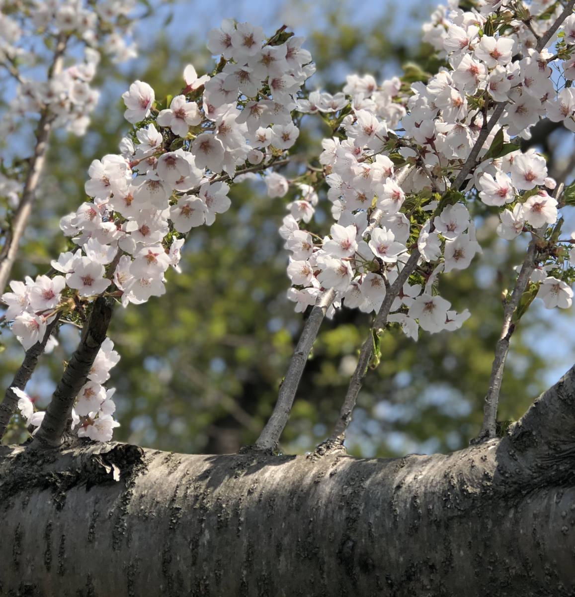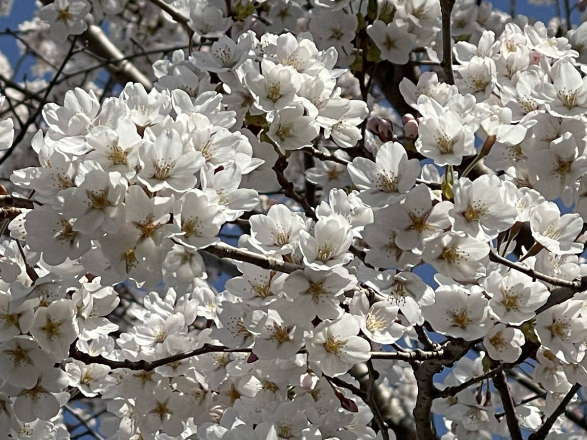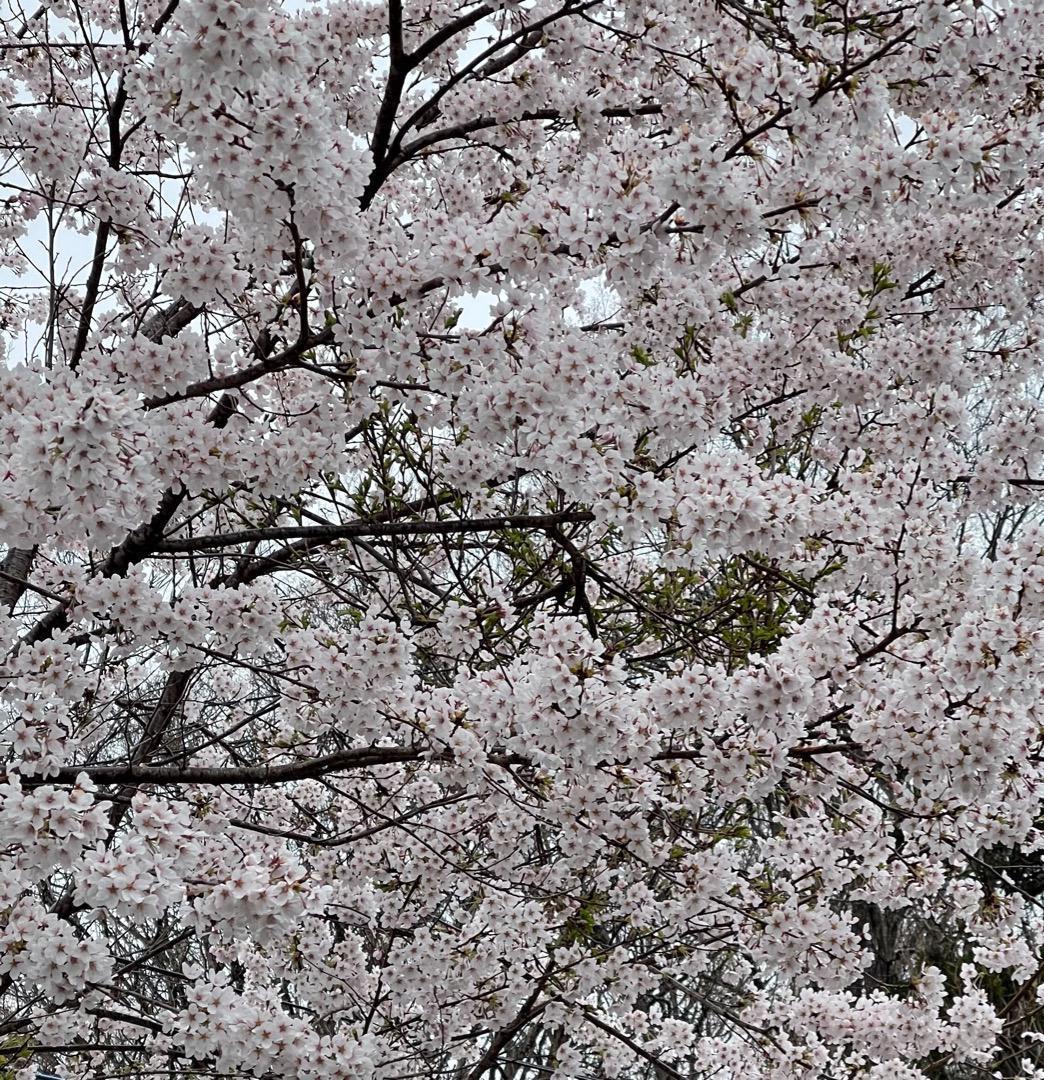 白い花びらでほんのりピンクがかった色のバランスが木の周り全体に 咲き乱れとても豪華です美しい桜です。