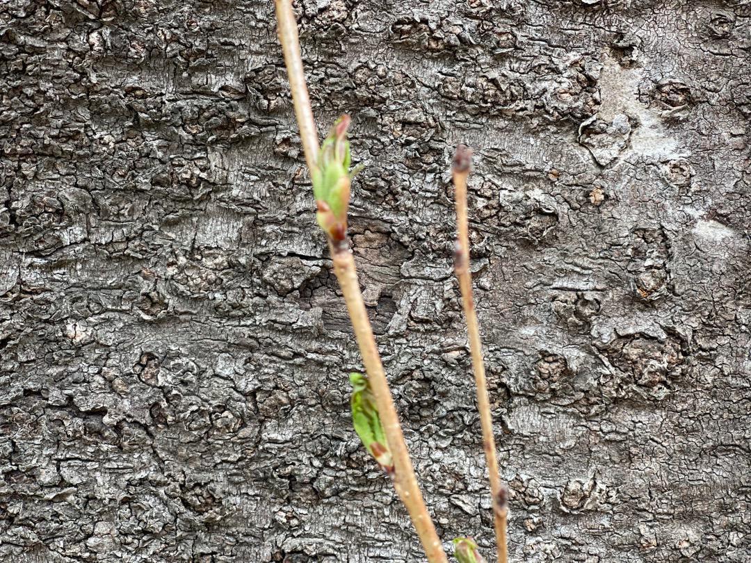 お送りするのは、桜の木の幹から飛び出ている若い芽の新しい枝をカットした挿し穂になります。