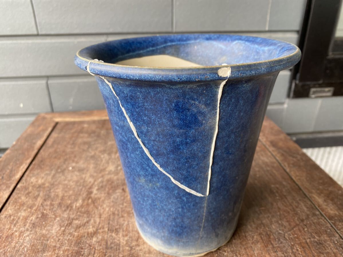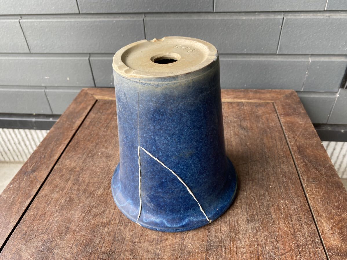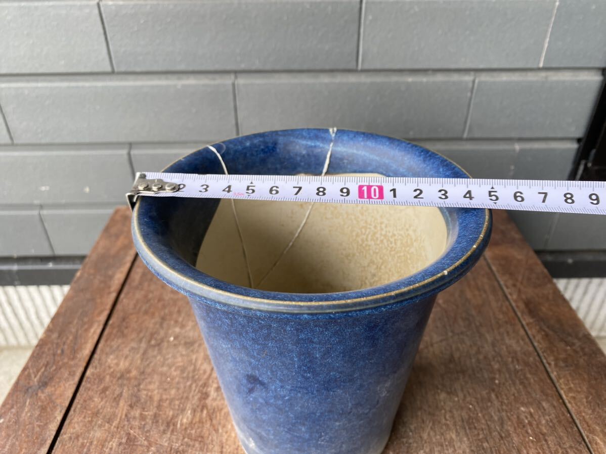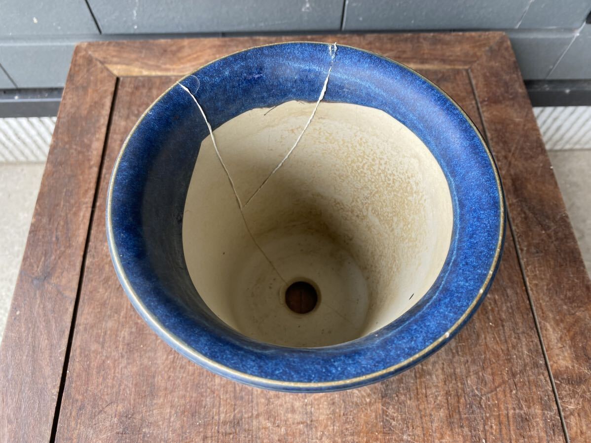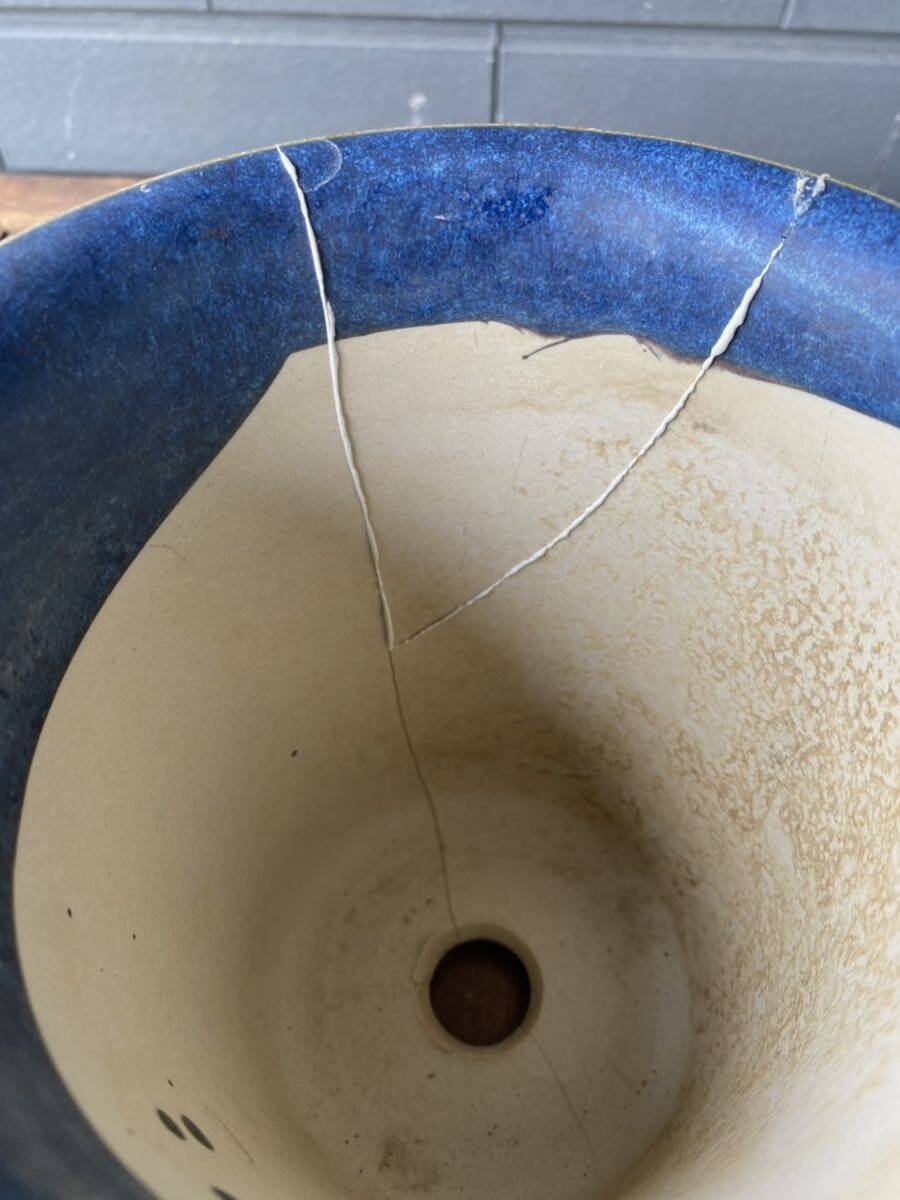 欠け傷やひび割れ傷、窯傷があり一度破損した箇所を接着剤で補修したあともあります。屋外で保管していたので水あかや土汚れなどが多少あります。詳しくは画像をご確認ください。