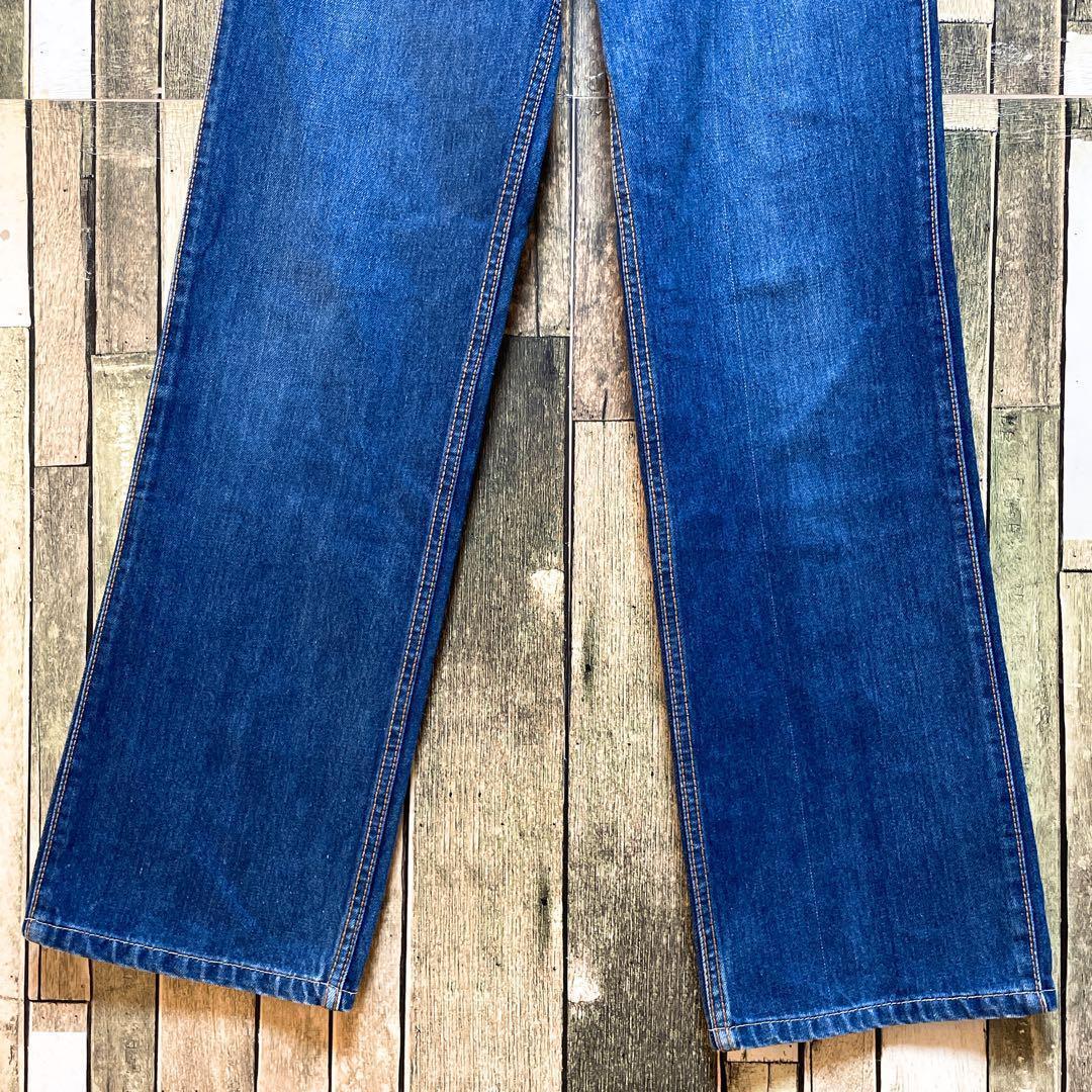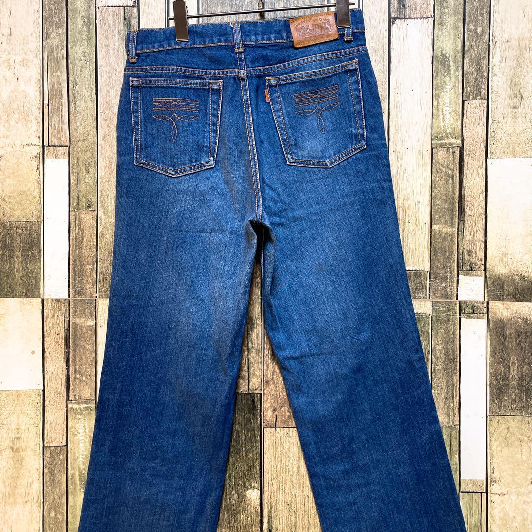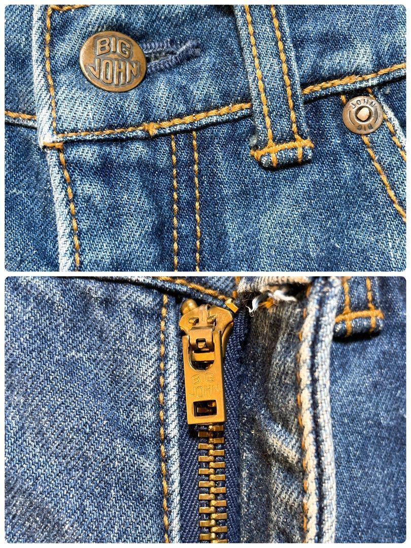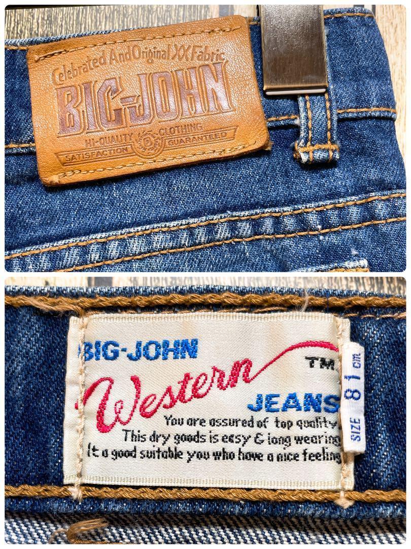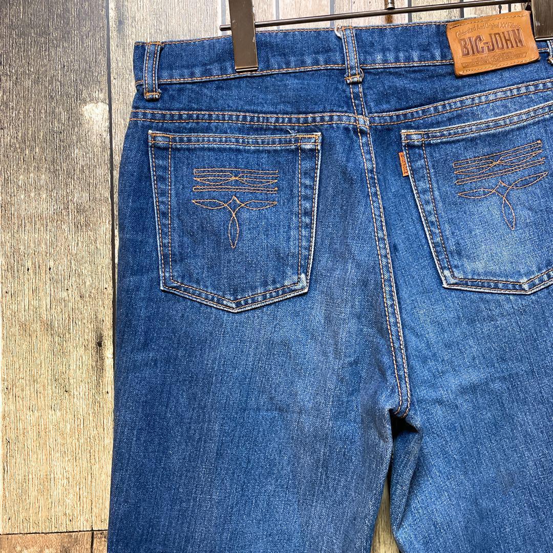 《日本製》ビッグジョン Big John 青☆デニムパンツ M 刺繍ロゴ ロゴタグ 革パッチ インディゴ h