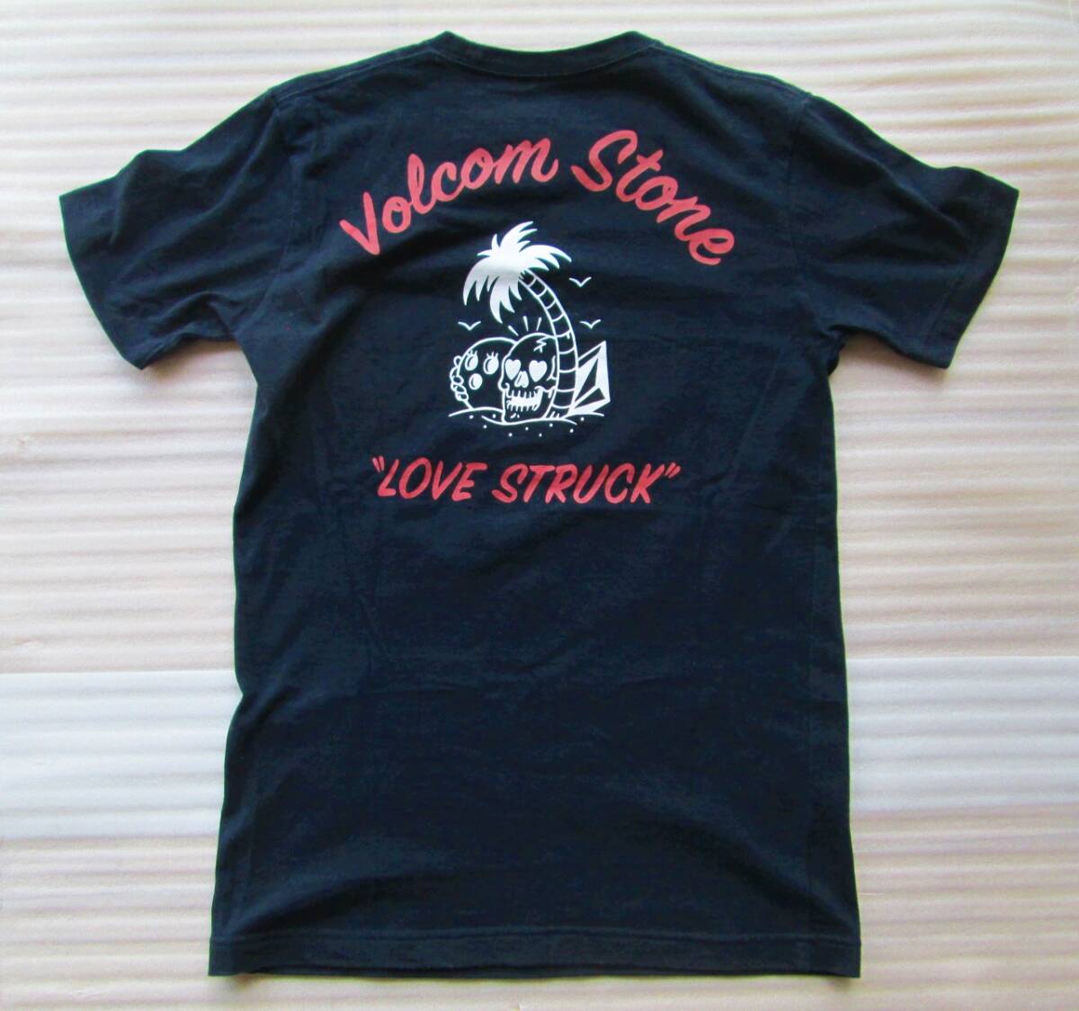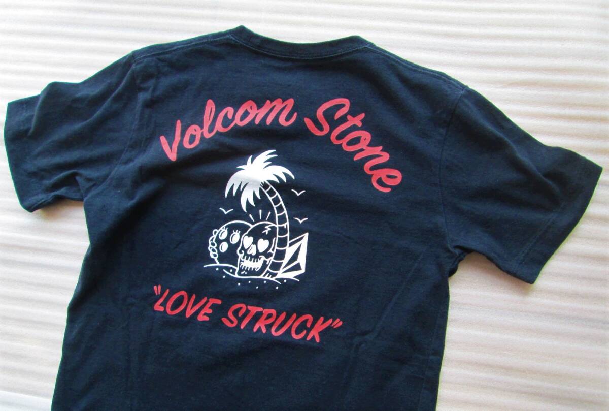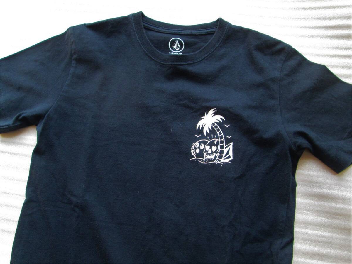 【美品・1回着用程度】VOLCOM ボルコム Sサイズ ブラック 黒 コットン 背面スカル&デカロゴ SKULL 送料230円OK!