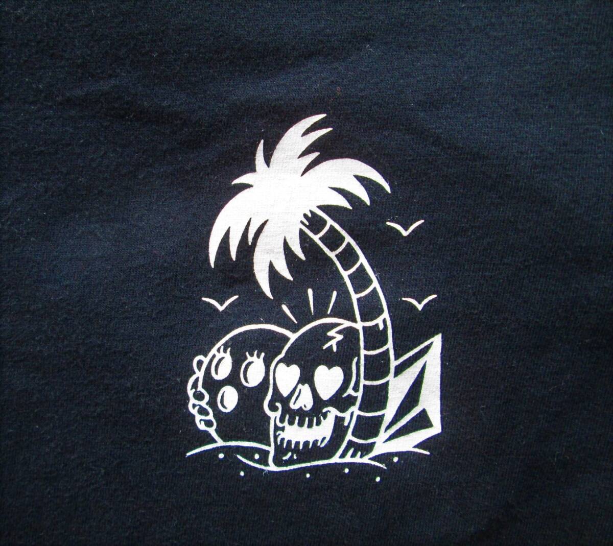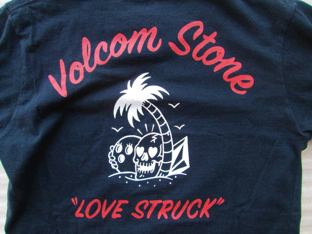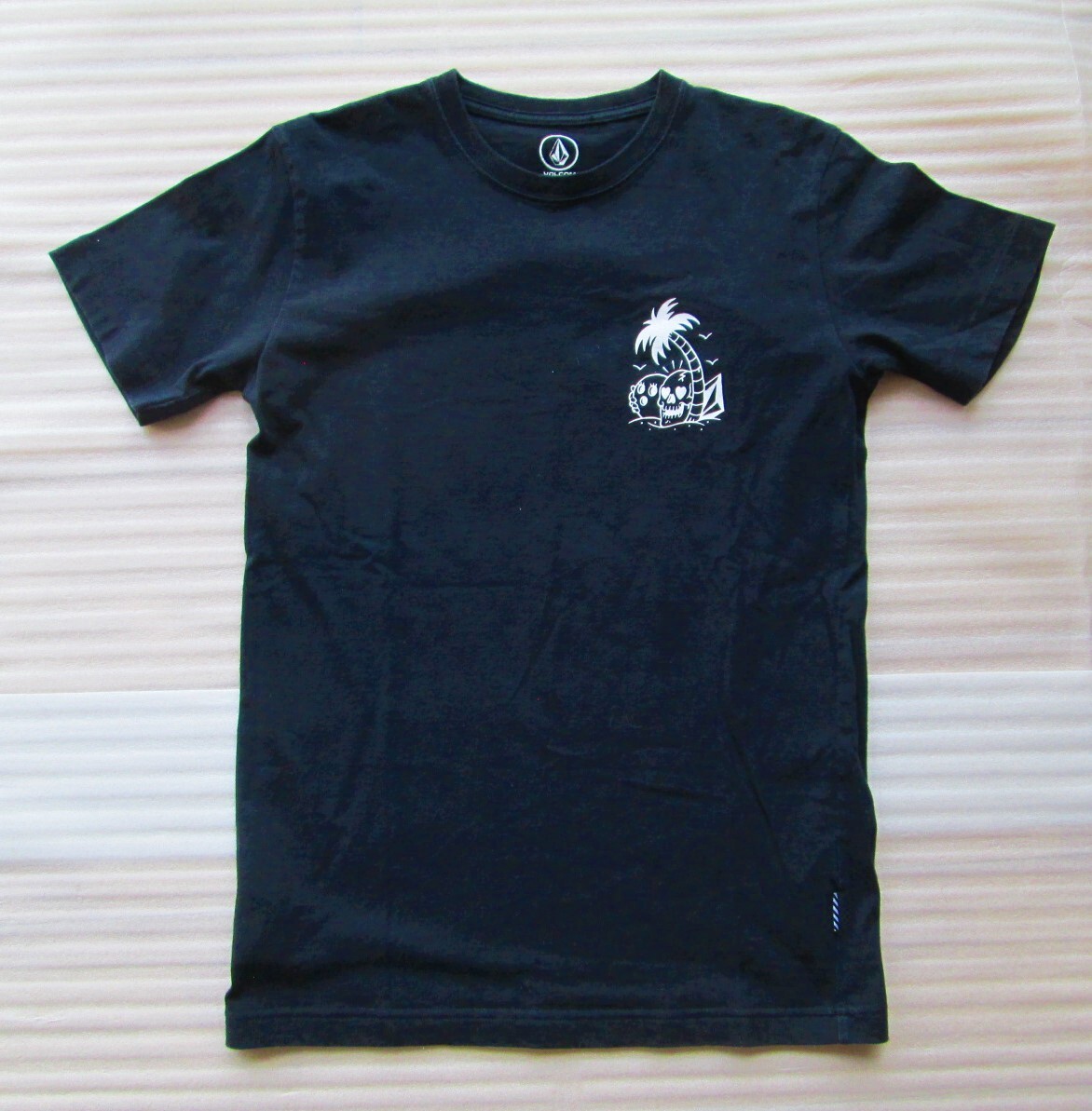 【美品・1回着用程度】VOLCOM ボルコム Sサイズ ブラック 黒 コットン 背面スカル&デカロゴ SKULL 送料230円OK!