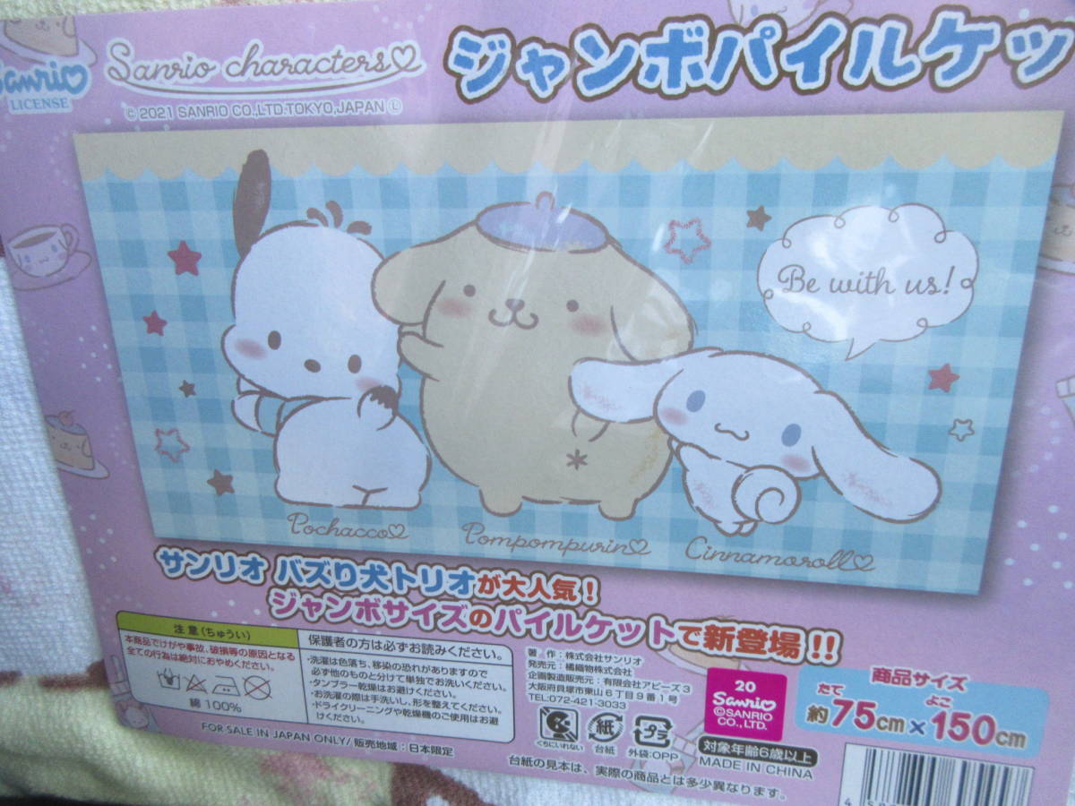 ☆サンリオ ジャンボ パイルケット 選択可 セット可 ポチャッコ ポムポムプリン シナモロール タキシードサム☆★新品未開封