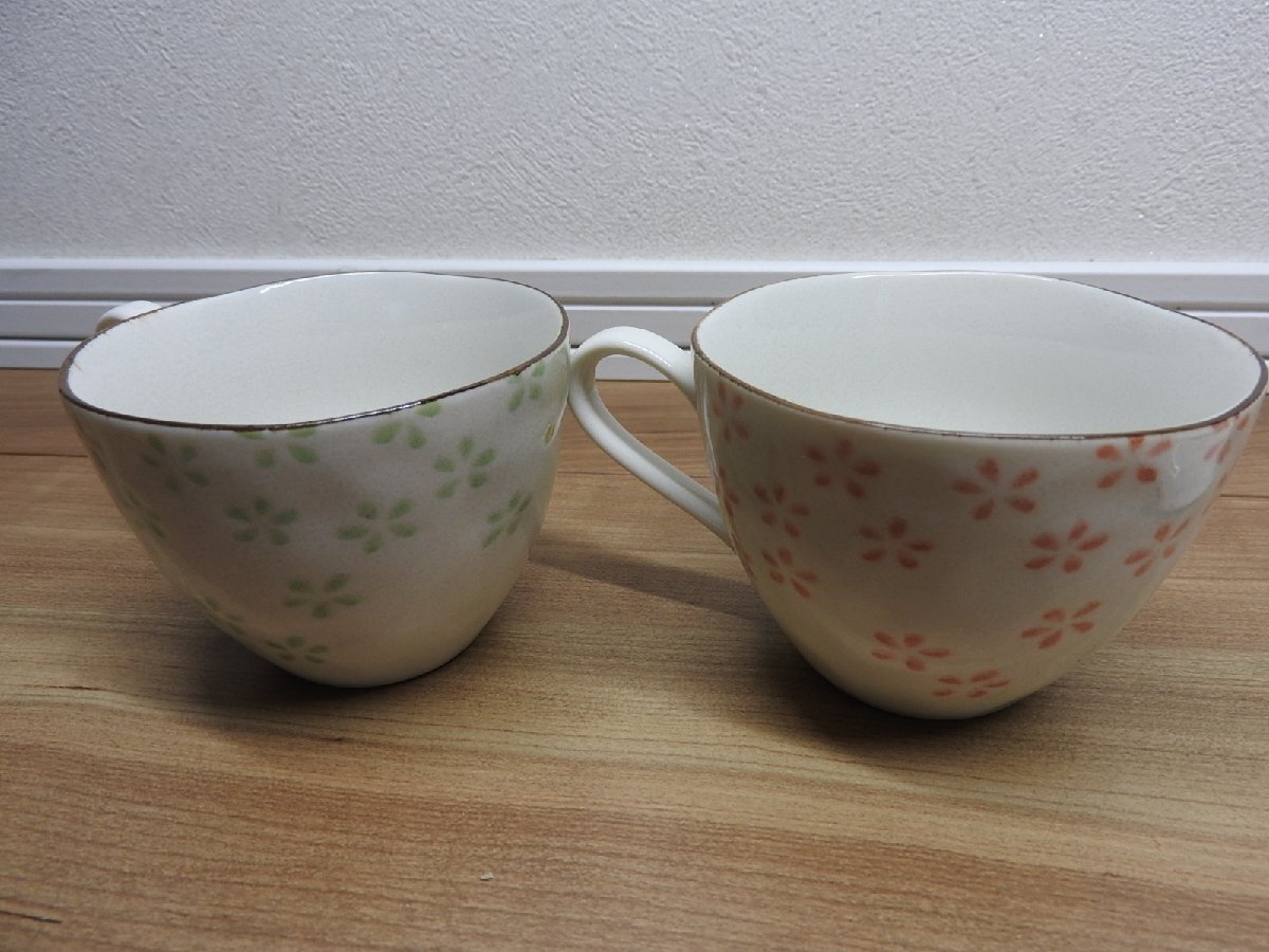 三峰 陶器 茶器 カップ&ソーサー 花模様 ピンク グリーン 2客 ペア セットになります。 保管期間ございますが、比較的綺麗な状態かと思います。 【サイズ】 カップ 口径 8.3㎝ 高さ 6.5㎝ ソーサー 直径 13.5㎝ 高さ 2.5㎝ 写っているものが全てです。 状態も含めて写真にてご確認下さい。 | ||||