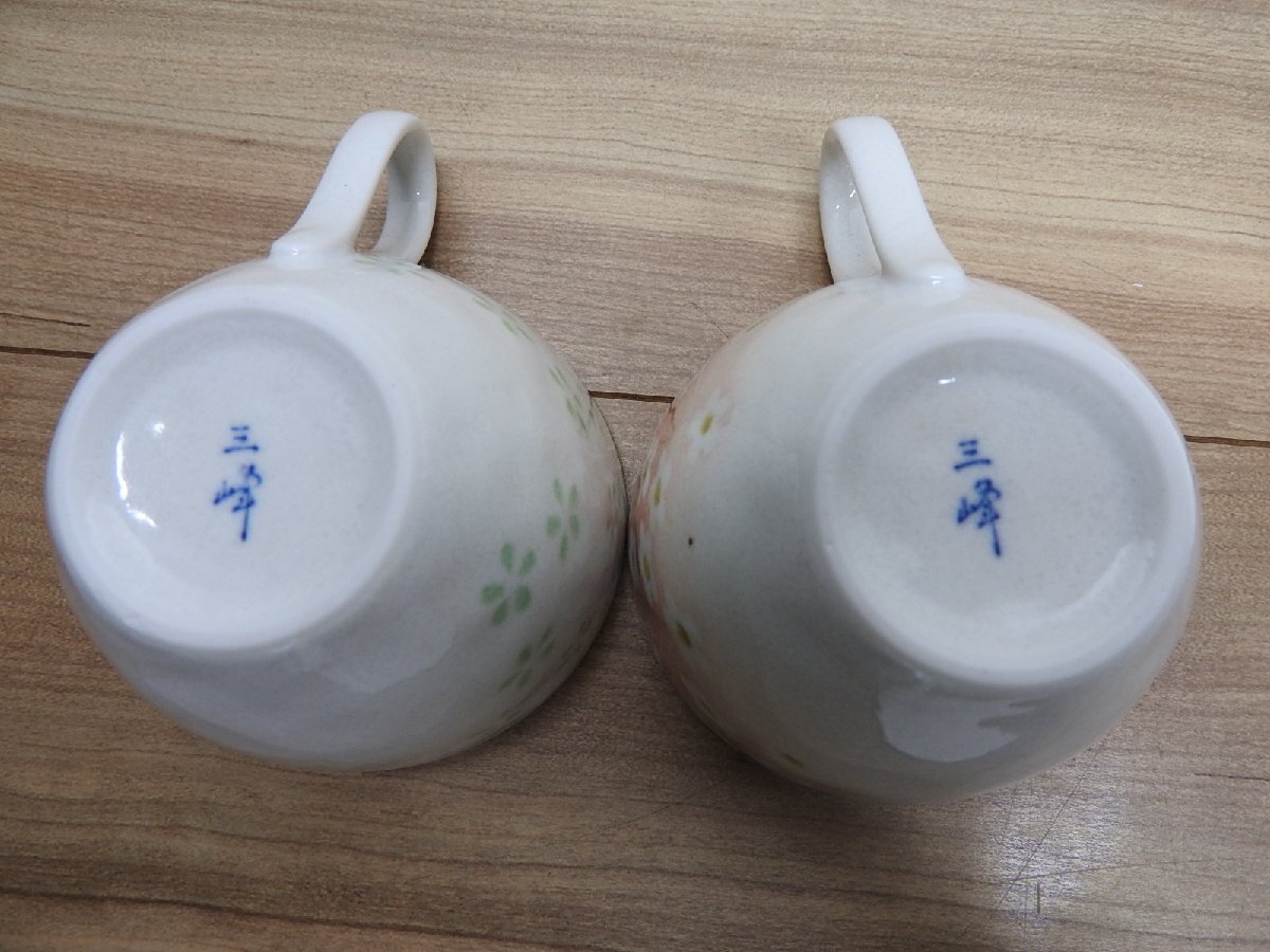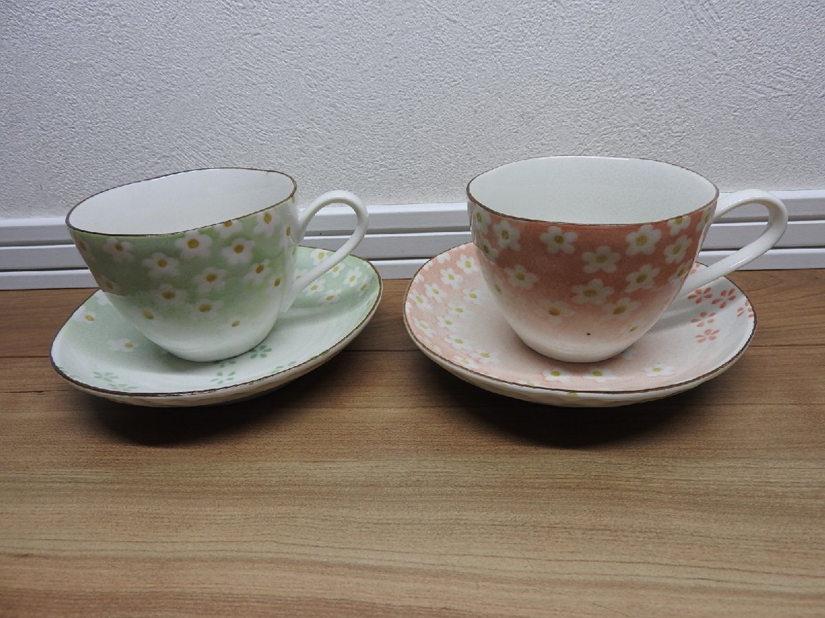 三峰 陶器 茶器 カップ&ソーサー 花模様 ピンク グリーン 2客 ペア セットになります。 保管期間ございますが、比較的綺麗な状態かと思います。 【サイズ】 カップ 口径 8.3㎝ 高さ 6.5㎝ ソーサー 直径 13.5㎝ 高さ 2.5㎝ 写っているものが全てです。 状態も含めて写真にてご確認下さい。 | ||||