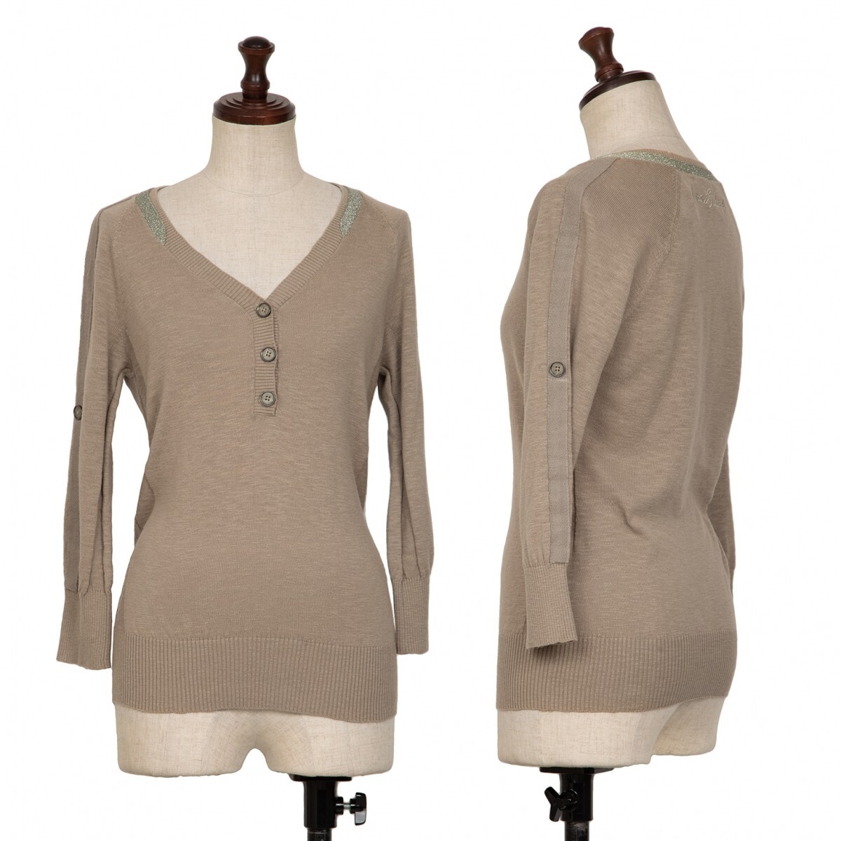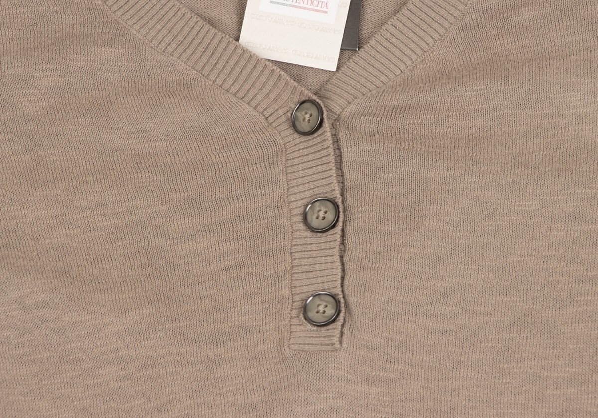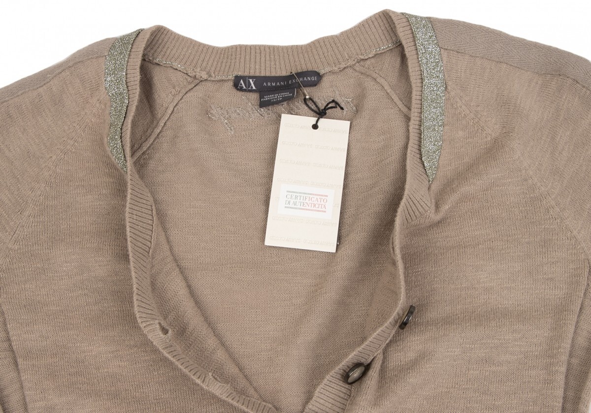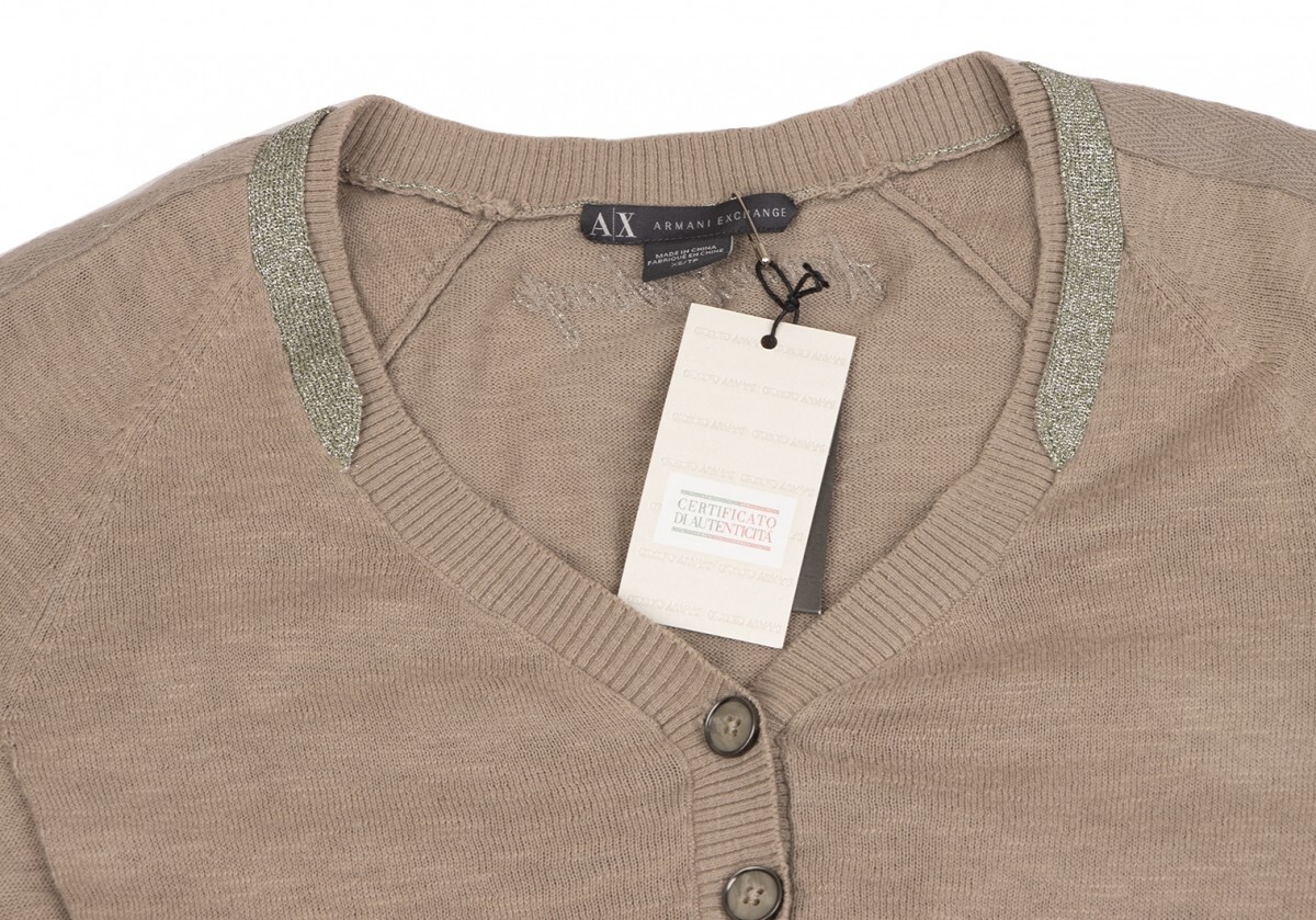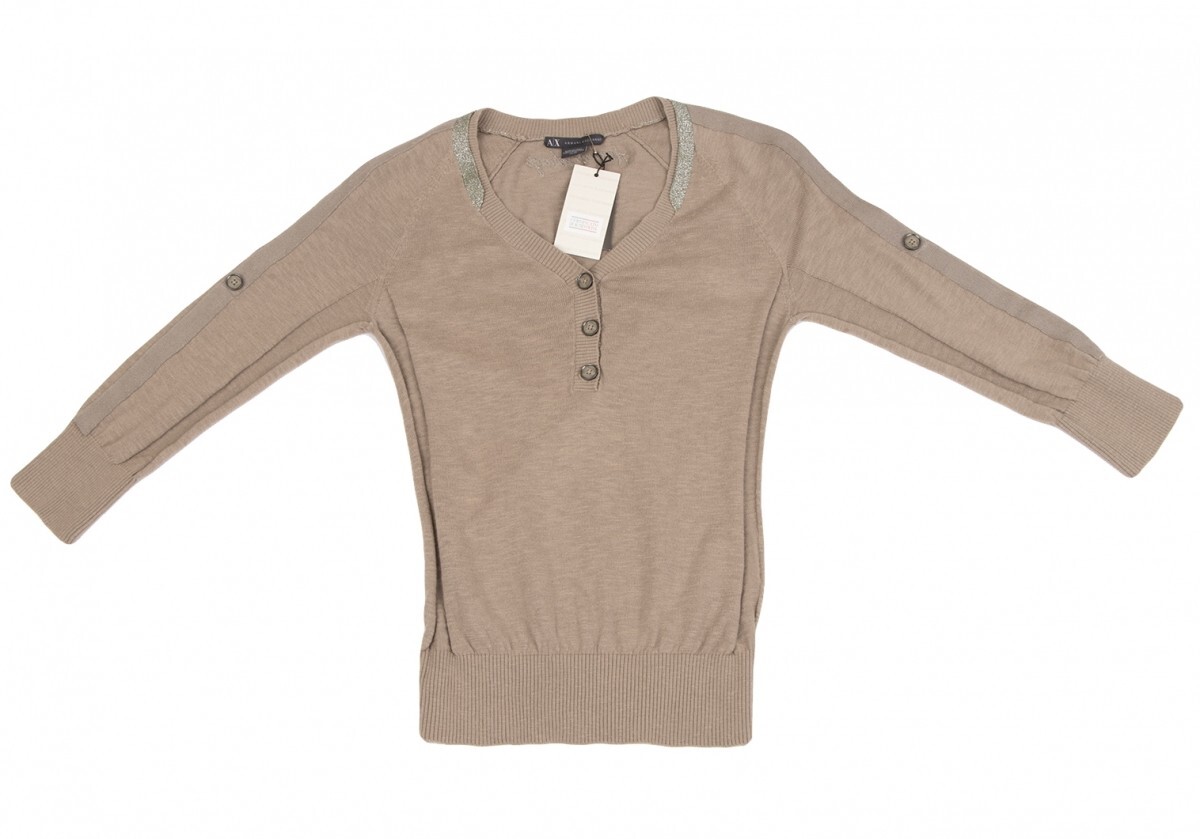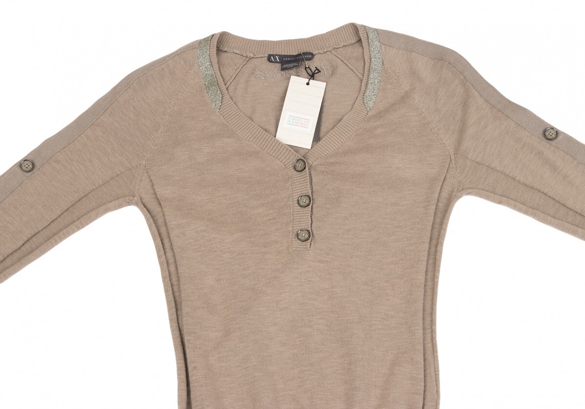 | アルマーニ エクスチェンジARMANI EXCHANGE ショルダーテープヘンリーネックコットンニットトップス モカXS |