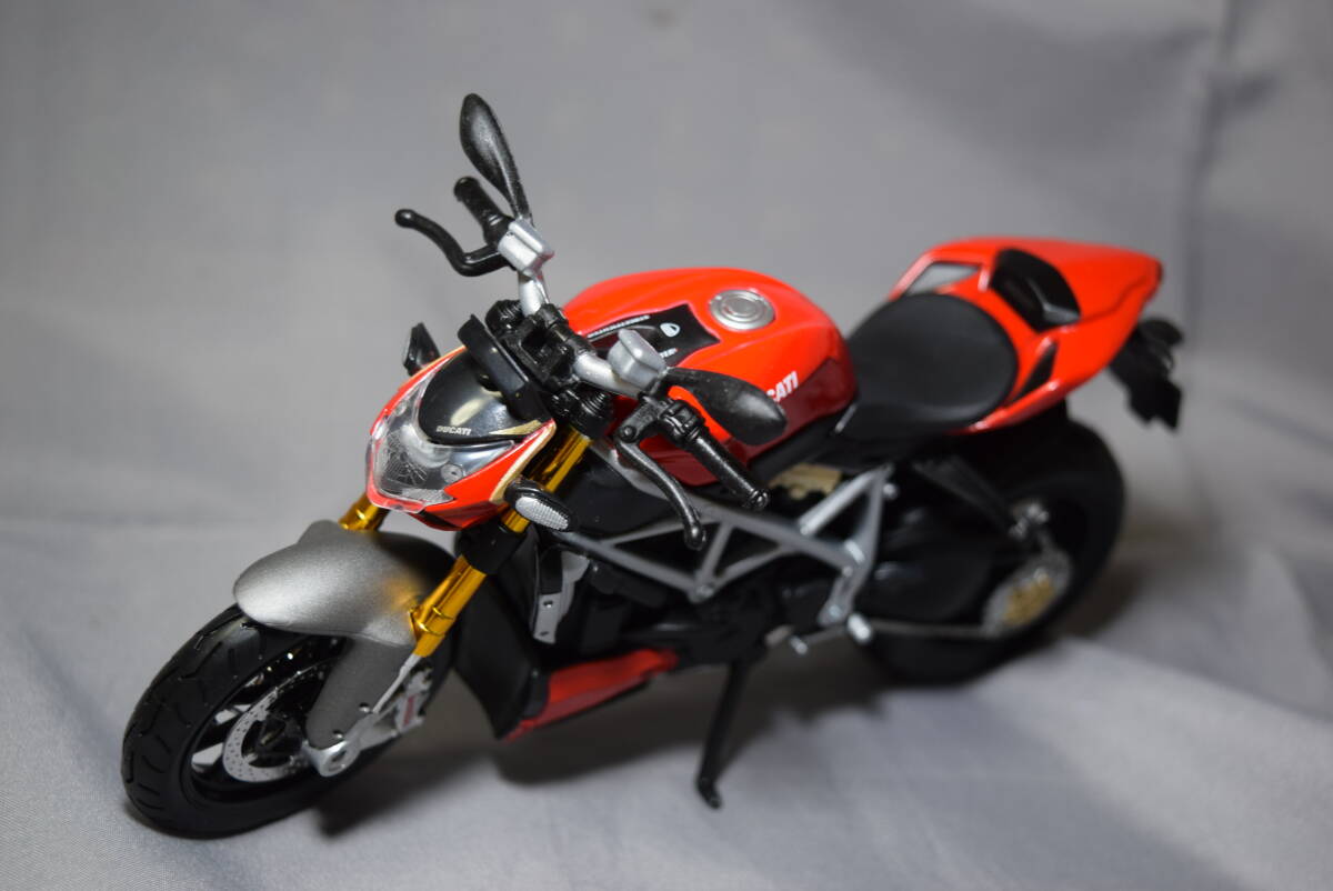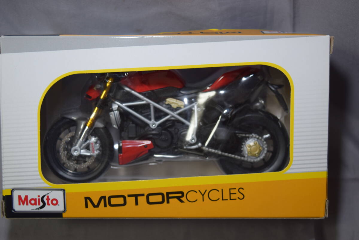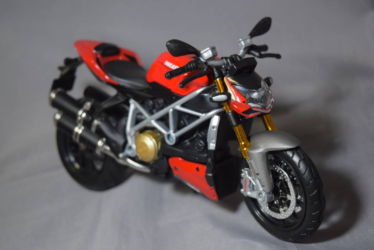 完成品バイクを多数ラインナップしていたMaistoから製品化されたドゥカティの市販ストリートモンスターマシンの完成品です。