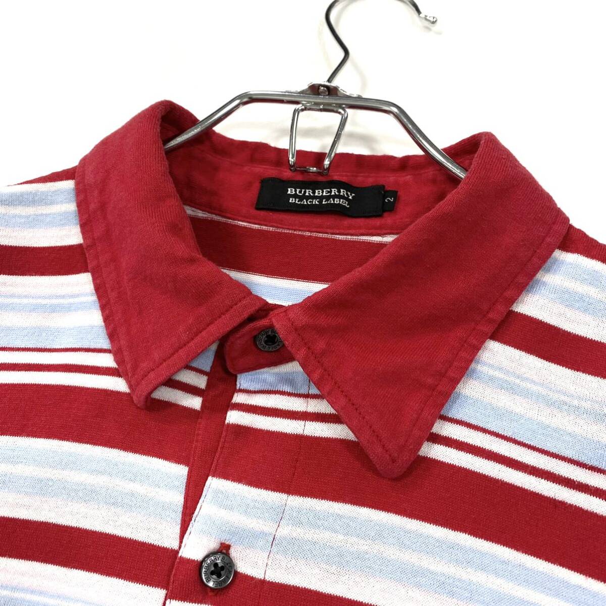 【BURBERRY BLACK LABEL(バーバリーブラックレーベル)半袖ポロシャツ ナイトロゴ レッド系/ブルー系/ホワイト】