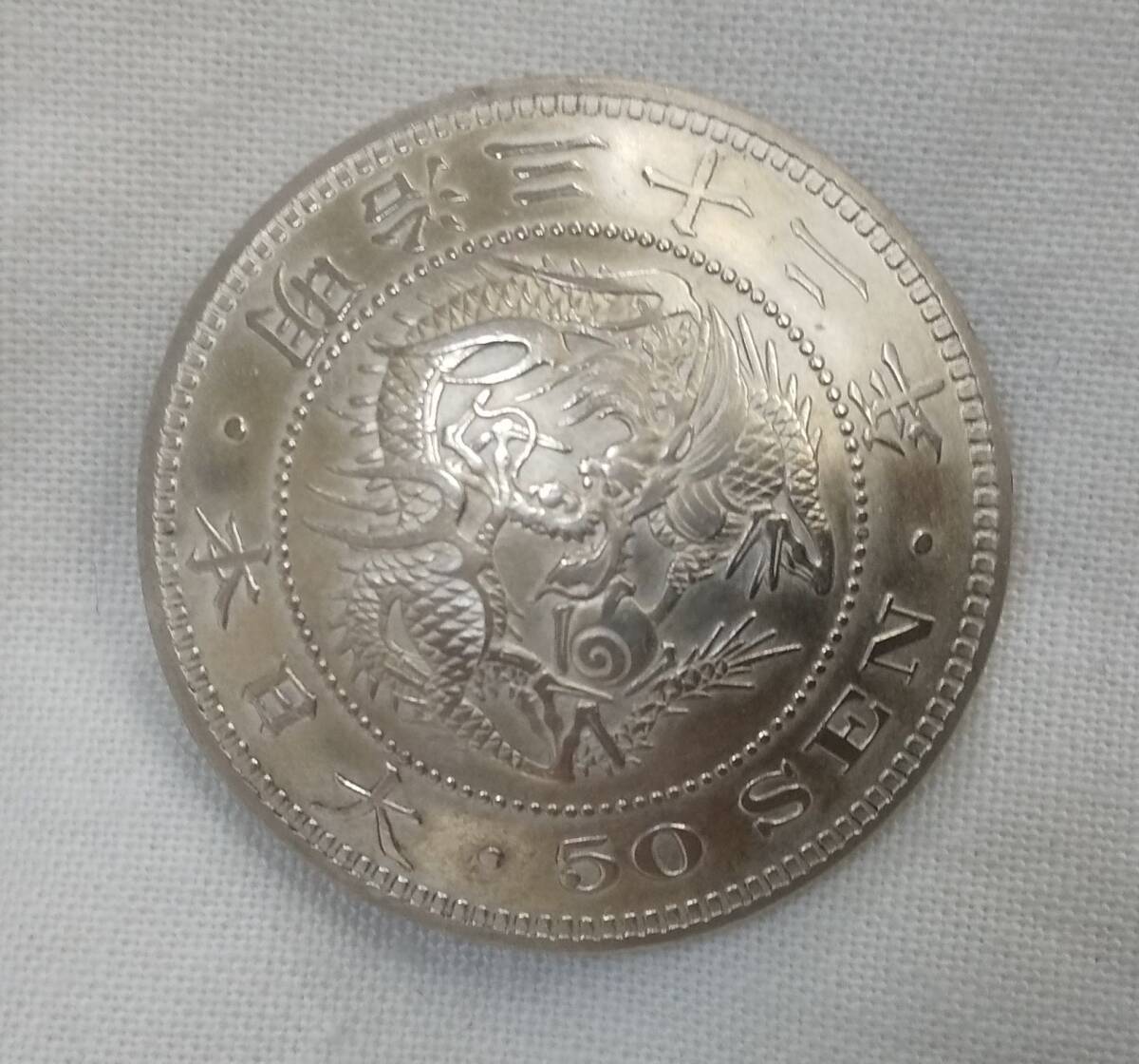 ねじ式コインコンチョ 竜50銭銀貨 明治32年