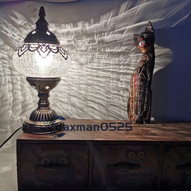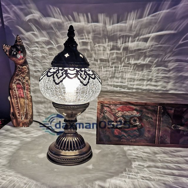 人気新品 手作りトルコランプ クラックガラス アンティーク風 テーブルランプ インテリア 間接照明 南トルコ細工