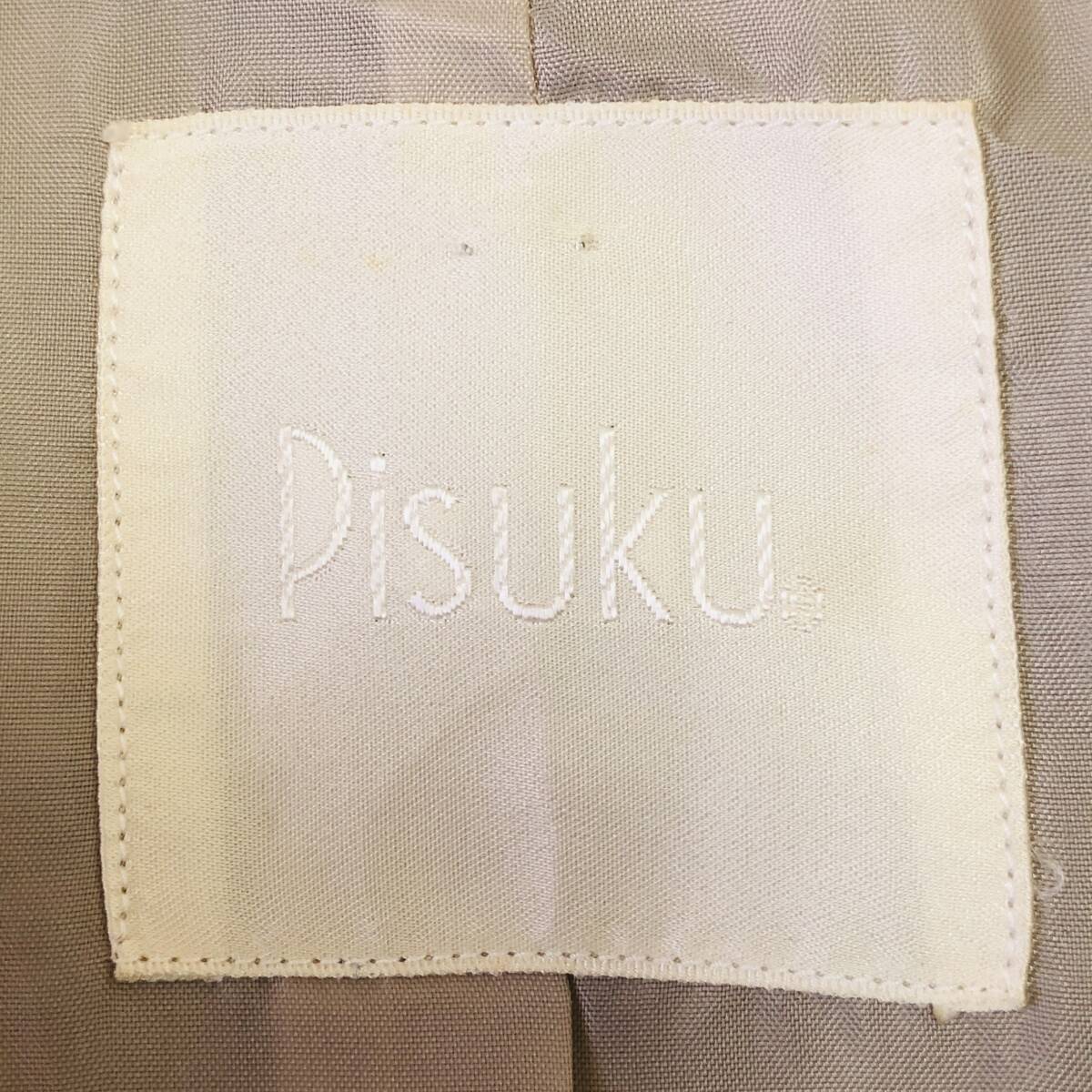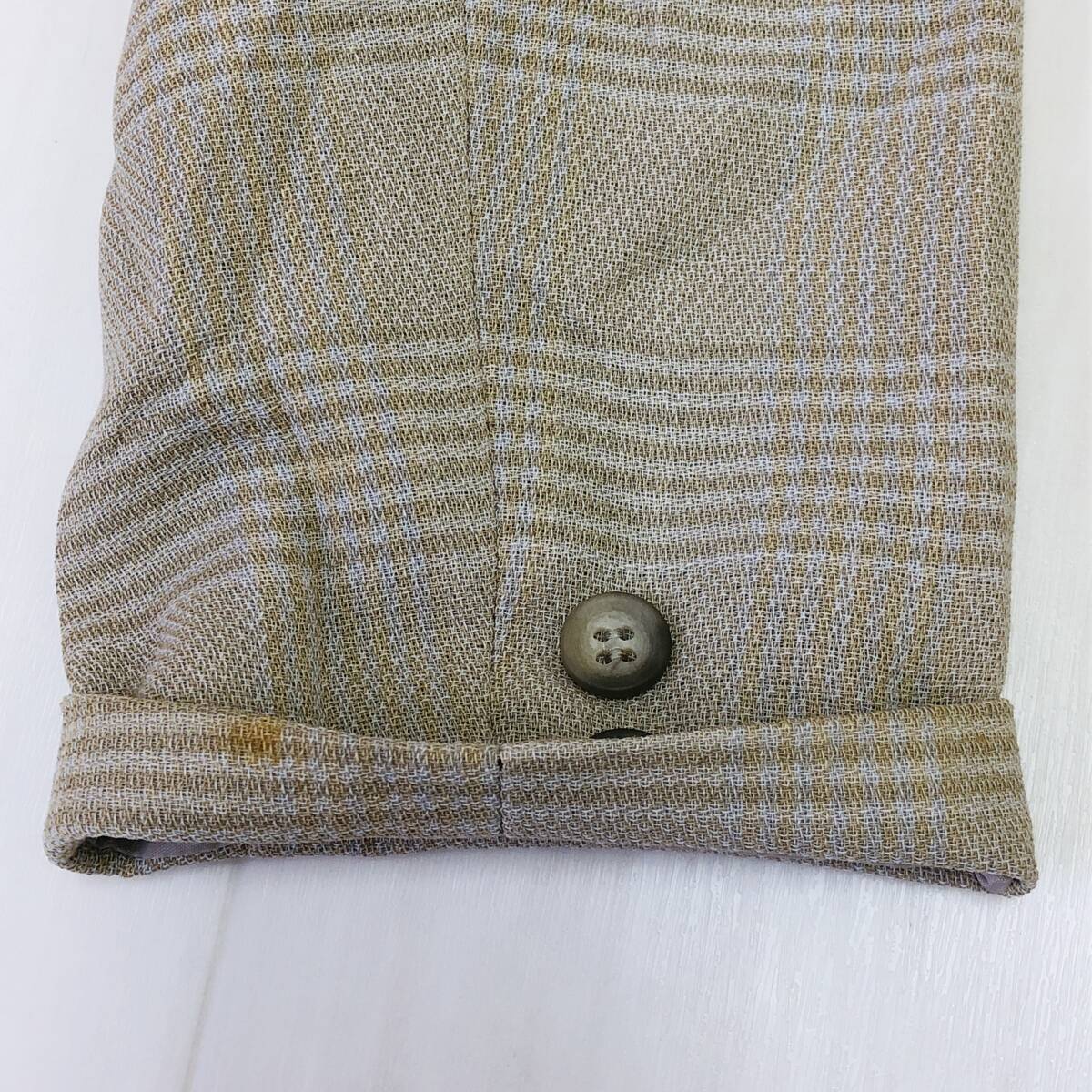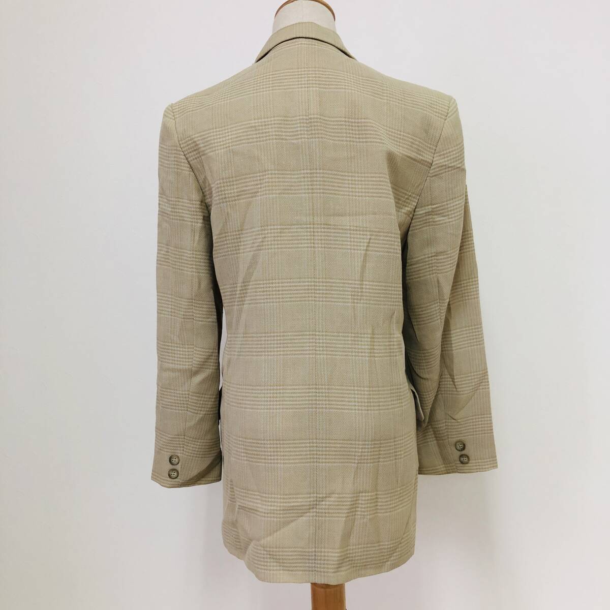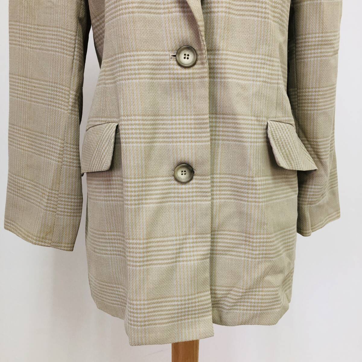 a03855 PiSUKU ジャケット シングル 肩パット 毛混 日本製 ポケット 裏地 M ベージュ チェック レディース ベーシックカジュアルスタイル
